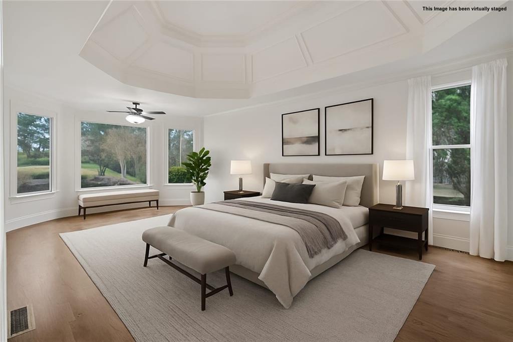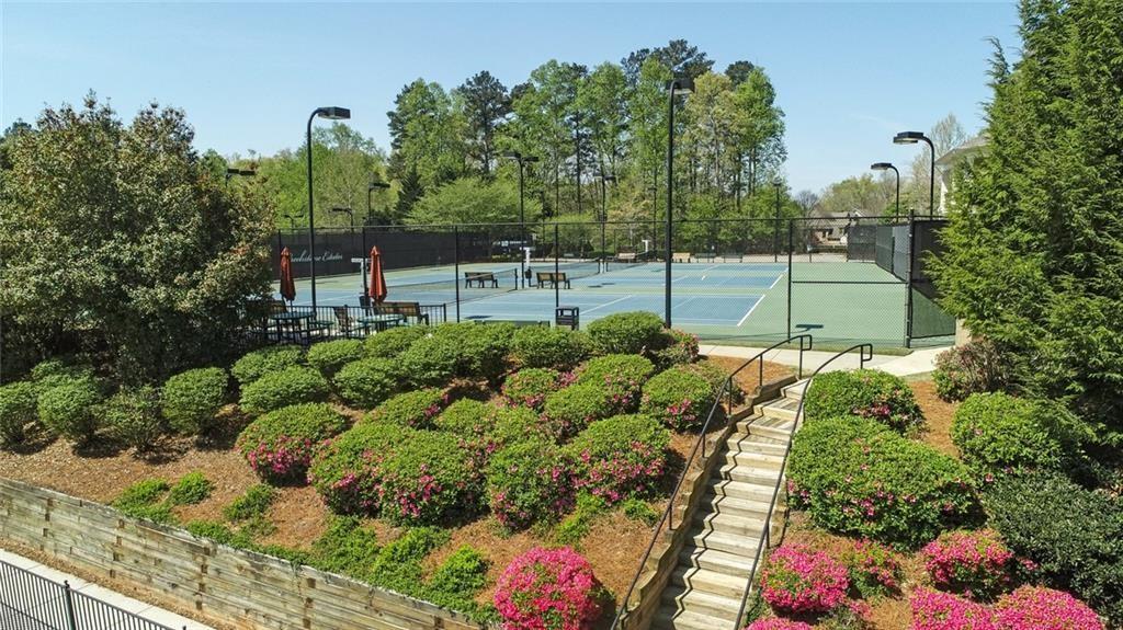 Welcome to 2445 Flat Stone Drive, an exceptional residence located in the prestigious Creekstone Estates community of South Forsyth!The place to call home! All new exterior and interior paint and refinished flooring throughout. This beautifully appointed home offers a thoughtfully designed primary bedroom on the main level with incredible expansive windows overlooking the beautiful, perfect, level backyard. Another generous bedroom upstairs that could serve as an additional primary or in-law suite. The kitchen features a large center island and fireside keeping room which is perfect for gathering with family and friends. The two-story great room is truly stunning, highlighted by dramatic bowed windows that floods the space with natural sunlight and also frames picturesque views of the park-like backyard. Step outside to a backyard retreat that has been meticulously landscaped, offering multiple areas to relax and entertain. An exceptional highlight, enjoy family and friends watching tv and gathering on the year round covered porch. This is a favorite spot of the current homeowner! Another backyard escape is spending evenings around the fire pit, unwind on the swing, or simply take in the serene, private setting. The terrace level is an entertainer's dream, finished with exceptional detail throughout. A pub-style setting showcases a home theatre room, full wet bar crafted from rich wood, complemented by a private, spacious game room and an impressive wine room. This level offers endless possibilities for hosting, relaxing, and entertaining in style. Creekstone Estates provides easy access to GA 400, Halcyon, Alpharetta, and the exciting, up-and-coming Gathering at South Forsyth, offering premier shopping, dining, and entertainment just minutes away. Residents enjoy a five-star amenities package, including a stunning clubhouse, fitness center, tennis courts and active teams, resort-style swimming pool, and scenic community lakes.