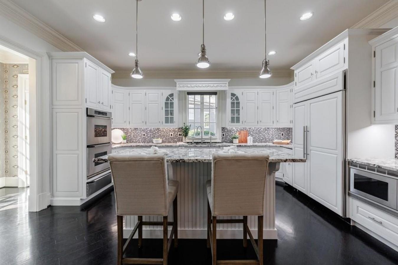 Magnificent stone estate offering timeless European elegance and exceptional walkability. This beautifully refreshed residence features five bedrooms, six full baths, two half baths, and five fireplaces, with newly painted interiors and a stunning white chefs kitchen that opens seamlessly to expansive living and entertaining spaces.