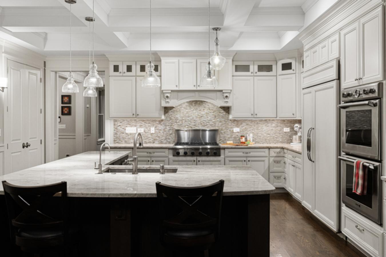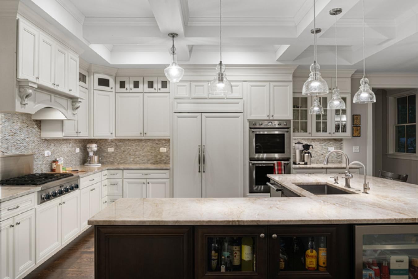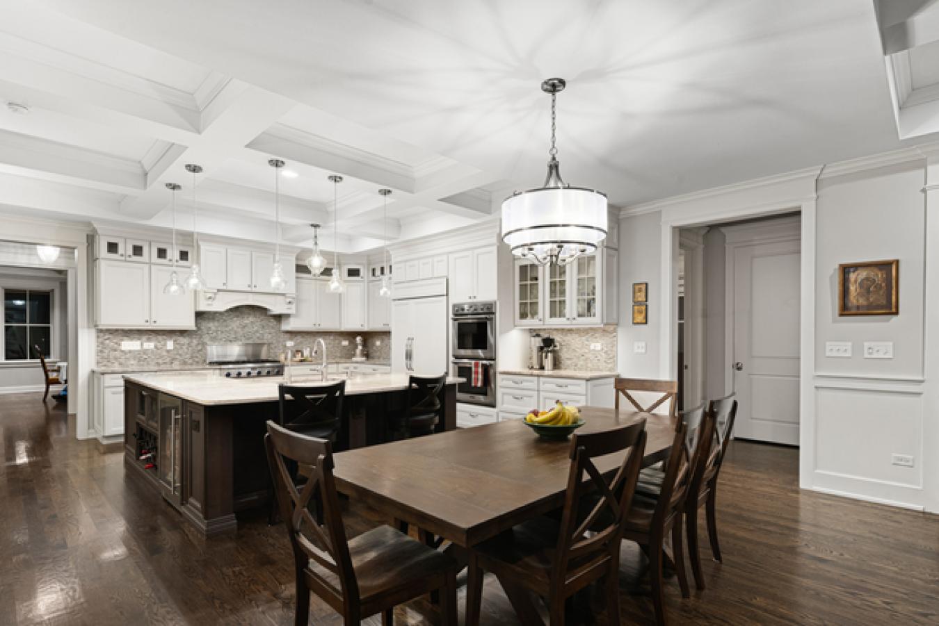 Nestled in the prestigious Scarsdale Estates Subdivision of Arlington Heights, this stunning 5-bedroom, 4.5-bathroom Colonial home, custom designed/built in 2019, offers 4,500 square feet of luxury living above ground and another 2,000 square feet in the lower level. The open floor plan showcases beautiful oak hardwood floors, recessed ceilings ranging from 9 to 10 feet, and an inviting family room with a limestone fireplace and coffered ceilings. The chefs kitchen features solid wood custom cabinetry, rare stone countertops, high-end Sub-Zero and Thermador appliances, and double ovens, and it flows seamlessly into the formal dining room, which provides access to the front porch. Perfectly positioned dining room surrounded by windows and coffered ceilings. The first floor includes a main floor suite with an ensuite private bath, an office, and a large laundry room with a laundry chute connecting to the second floor. The spacious mudroom leads to a heated 3.5-car garage. The primary suite boasts a limestone fireplace, a spa-like master bath with a large soaking tub, and a large walk-in closet. Also, on the second floor, you have three more guest bedrooms and two more guest bathrooms. Additional highlights include a whole-home backup generator, 400-amp electric service, an easy-access stairway from the garage to the partially finished basement, and a large driveway for multiple cars with 2 parking spaces and room to maneuver/turn around. Located within the highly rated Prospect High School district, this home combines modern elegance with functional amenities, including a drainage system around the perimeter, Ethernet CAT 6 throughout, and an oversized garage ideal for larger vehicles or trailers. Steps from shopping & restaurants! Home sits on 1/2 acre of land.