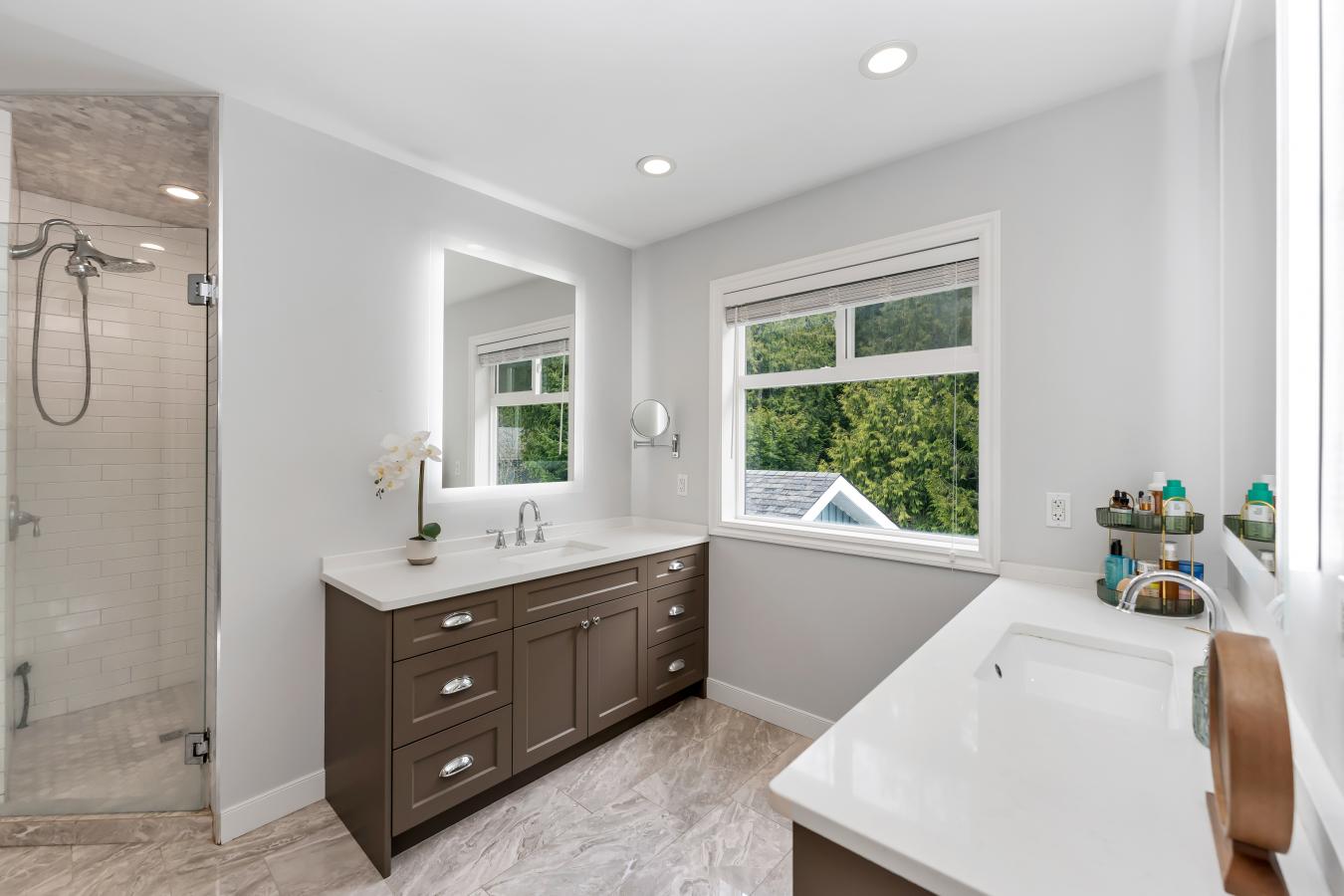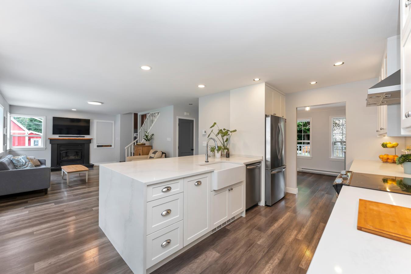 Why wait for new construction when you can have the best of both worlds? This extraordinary McLean residence has been completely reimagined-taken down to the studs and rebuilt with uncompromising attention to detail, including all-new wiring and plumbing. The result is a one-of-a-kind home that feels brand new, yet rests in the heart of an established, tree-lined neighborhood. From the moment you step inside, light pours across herringbone hardwood floors and through soaring ceilings, creating a sense of elegance thats as inviting as it is impressive. The main level was designed for both grand entertaining and intimate living. At its heart, the chefs kitchen is a masterpiece, outfitted with Wolf and Sub-Zero appliances, a 6-burner gas range with pot filler, farmhouse sink, and an oversized walk-in pantry that keeps everything beautifully organized. The adjoining dining space is bathed in natural light, while the dramatic living room-with its cathedral ceilings, gas fireplace, and walls of windows-makes every gathering feel special. Step into the all-season sunroom addition, where sliding glass doors open to the deck, and youll find the perfect spot to sip morning coffee, unwind with a glass of wine, or watch the seasons change. Upstairs, the owners suite is a private sanctuary. Vaulted ceilings, custom glass closets, and remote-controlled shades set the stage for ultimate relaxation, while the spa-like bath-with frameless glass shower, designer tile, and top-tier fixtures-rivals any luxury retreat. Two additional bedrooms, including one styled as a sleek home office, provide versatility, while a tucked-away laundry behind farmhouse doors adds modern convenience. The lower levels are designed for lifestyle flexibility. A spacious family room with brick accent wall and wood-burning fireplace is ideal for cozy evenings, while a private bedroom suite with direct backyard access offers guests their own getaway. On the second lower level, an expansive flex space adapts to your needs-whether a home gym, art studio, playroom, or second office-with a 2nd laundry nearby for everyday ease. The outdoor living spaces are just as captivating. A stone walkway and glass front door create a memorable first impression, while lush gardens and mature plantings frame a fully fenced, flat backyard. The stone patio, deck, and generous green space invite both quiet relaxation and lively gatherings under the stars, all with the rare privacy of having no neighbors directly behind. Nestled on a peaceful cul-de-sac just blocks from downtown McLean, and close to Tysons, this home balances serenity with accessibility. In minutes, you can be at the Silver Line Metro, Tysons Corner, or Capital One Hall, with effortless routes to I-495, Route 7, and the Dulles Toll Road. Blending flawless design, modern luxury, and a sought-after location, this home isnt just a place to live-its a lifestyle.