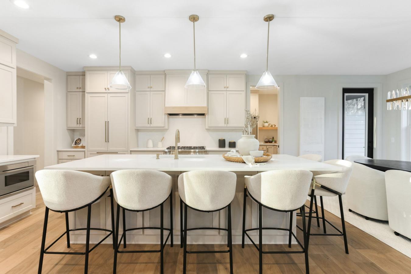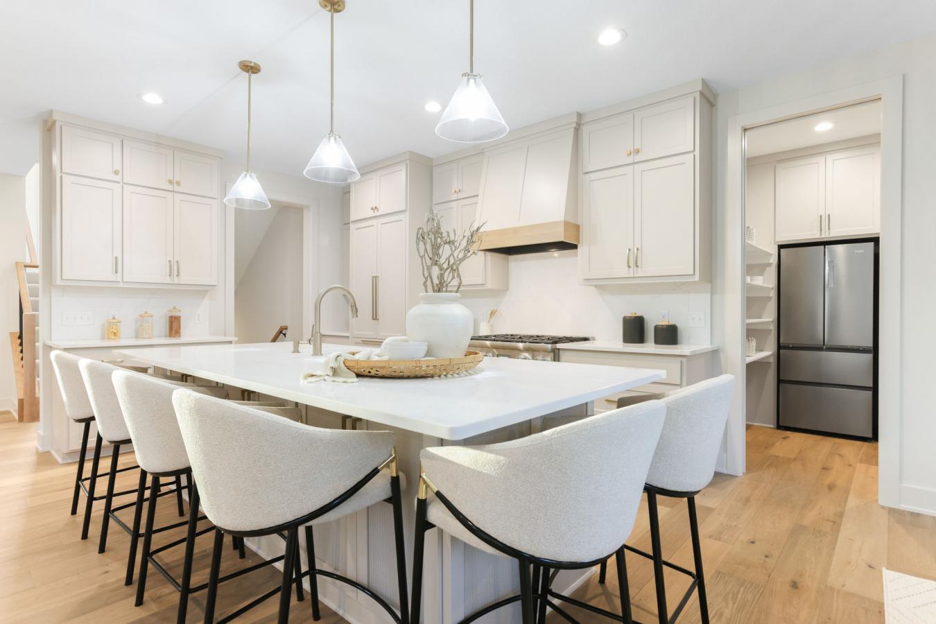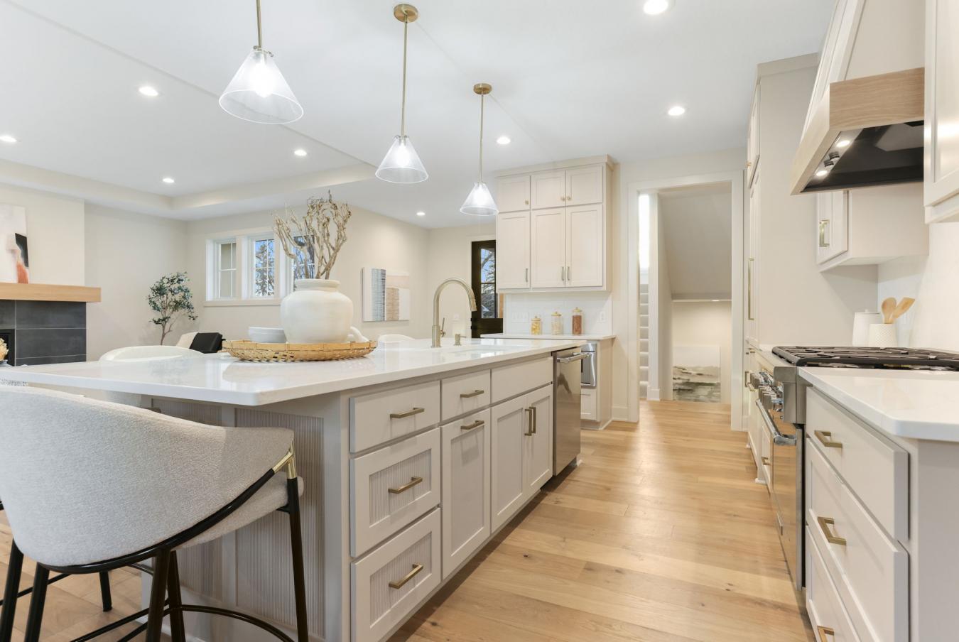 Exceptional new custom-built home by Stone Cottage Construction on a desirable corner lot in a sought-after Edina neighborhood! This stunning two-story home offers 6 bedrooms and 5 bathrooms with thoughtful design and high-end finishes throughout. The gourmet kitchen features a center island, soft-close cabinetry, Thermador appliances, and a spacious walk-in pantry-perfect for entertaining and everyday living. The open-concept main level showcases beautiful white oak hardwood floors, Andersen windows, and a welcoming great room with a gas fireplace. A versatile main-floor bedroom provides flexibility for guests or a home office. Upstairs, all four bedrooms include walk-in closets, and the luxurious primary suite features a spa-inspired ensuite bathroom. The finished lower level offers a generous family room, wet bar, sixth bedroom, and bath-ideal for gatherings and relaxation. The insulated garage has a rough-in gas line for a heater as well as a floor drain, which adds convenience year-round. Nestled in the award-winning Edina School District, this home combines quality craftsmanship with timeless style.