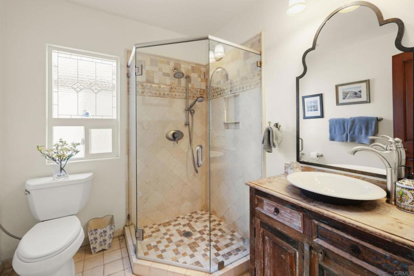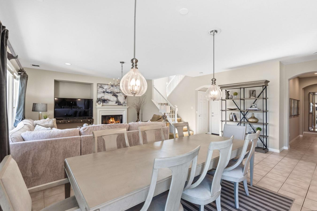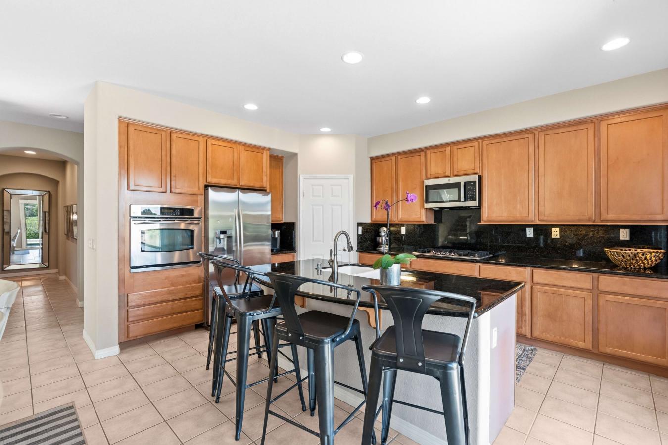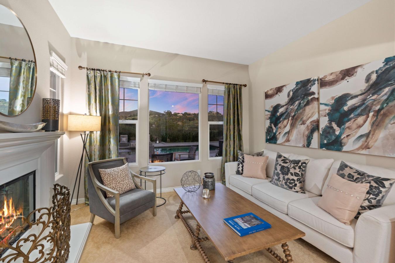Positioned at the end of a peaceful cul-de-sac in Mariners Point, this oversized corner-lot residence offers a rare combination of privacy, open canyon views, and no rear neighbors. The setting feels calm, spacious, and increasingly difficult to find in San Elijo Hills. Spanning nearly 3,000 square feet with 4 bedrooms and 3.5 baths, the home balances refined design with thoughtful functionality and seamless indoor-outdoor living. The approach feels both private and welcoming, with mature landscaping framing the entry and enhancing the sense of arrival. Inside, the main level is designed for everyday ease and effortless entertaining. The expansive kitchen features a large center island, walk-in pantry, and abundant cabinetry, opening directly to the living room with a fireplace and sliding doors to the backyard. The flow between spaces supports both gatherings and daily routines with equal comfort. A separate downstairs sitting room with its own fireplace provides additional living space ideal for a media lounge, playroom, or quiet retreat. The former formal dining room is currently configured as a dedicated office, offering valuable work-from-home functionality without sacrificing living areas. A main-level bedroom with a private en-suite bath offers practical accommodations for guests or multigenerational living, a layout feature buyers consistently value. Upstairs, the primary suite is thoughtfully positioned for privacy, with a balcony overlooking the backyard and canyon beyond. The spa-inspired bath includes a centrally positioned soaking tub, dual vanities, a walk-in shower, and an expansive wraparound closet with built-ins. Two additional bedrooms, a spacious bonus room with ocean views, and a dedicated laundry room with sink and extensive cabinetry complete the upper level, offering versatility for evolving household needs. Built-in hallway storage and a generous under-stair closet further enhance daily livability. The backyard is where this property truly distinguishes itself. Recently upgraded with a stunning saltwater pool and spa, the outdoor space was intentionally designed to maximize usability and long-term enjoyment. A built-in BBQ station with refrigerator, bar seating, and expansive prep space anchors the yard, while a gas firepit creates a comfortable gathering area. Low-maintenance turf enhances functionality, and the protected canyon backdrop ensures enduring privacy and unobstructed sunset views. San Elijo Hills is known for its rare blend of community connection and natural beauty. Miles of hiking and walking trails weave throughout the neighborhood, and nearby Double Peak Park offers panoramic coastal and mountain views residents deeply appreciate. The town center brings coffee shops, restaurants, parks, and community events together in a way that feels vibrant yet manageable. Located within the highly regarded San Marcos Unified School District, this home offers a compelling and increasingly scarce balance of privacy, flexibility, and connected community living in one of North Countys most established settings.