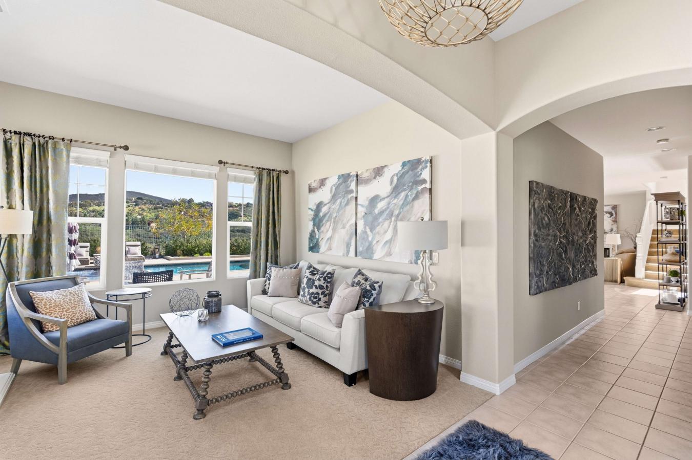 Positioned at the end of a peaceful cul-de-sac in Mariners Point, this oversized corner-lot residence offers a rare combination of privacy, open canyon views, and no rear neighbors. The setting feels calm, spacious, and increasingly difficult to find in San Elijo Hills. Spanning nearly 3,000 square feet with 4 bedrooms and 3.
