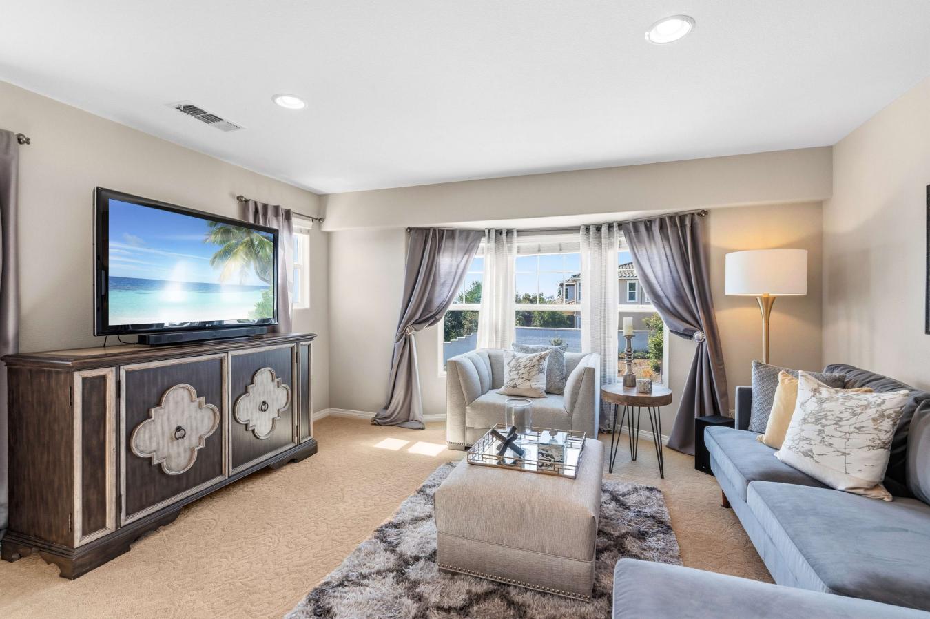This semi-custom Toll Brothers home in "The Cliffs" delivers luxury finishes and a versatile four-bedroom layout, including three en-suite bathrooms. Located on a large cul-de-sac in a gated community, the home features expansive views of the Sierras and Peavine Mountain. The interior is designed for flexibility with two large living rooms and an additional den/office.
