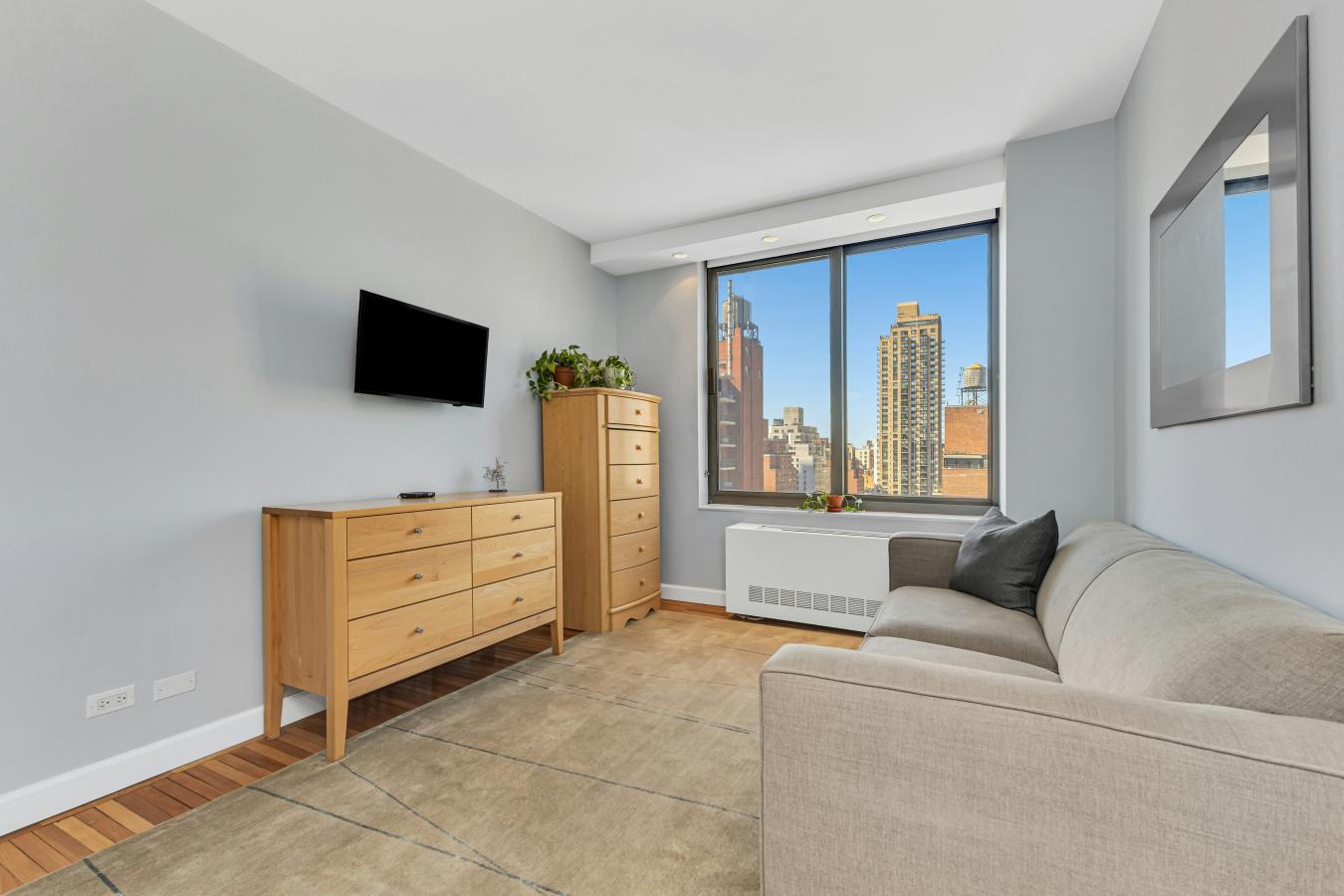 NO BOARD APPROVAL, CONDO RULES, INVESTOR FRIENDLY, PIED-A-TERRES WELCOME Experience sweeping northern and western skyline views from this spectacular 18th-floor corner two-bedroom, two-bath residence with a private balcony and breathtaking sunsets. This thoughtfully renovated home features a modern, windowed chefs kitchen with custom Italian cabinetry by Scavolini and premium appliances by Miele, including a fully concealed full-size washer and dryer, and a refrigerator by Liebherr. Both bathrooms have been tastefully renovated with fixtures by Kohler, elegant finishes, and generous storage. The en-suite primary bath features a large glass-enclosed walk-in shower, while the second bath offers a deep soaking tub. The intelligently designed split-bedroom layout provides exceptional privacy. Both bedrooms include custom closet systems, enhanced lighting, and additional built-in storage. The America is a premier full-service Condop (Co-op with Condo rules) that allows condominium-style ownership flexibility. The building features a fully equipped health club, heated pool, dry sauna, party room, full-time doorman/concierge, private garage, bike storage, Verizon Fios. Pet friendly. Coveted Upper East Side location between Central Park & Carl Schurz Park. Close to shopping, restaurants, transportation, and the best private & public schools. Close proximity to the new Q line Second Avenue subway, 4-5-6 subways, Fairway, Whole Foods supermarkets, Equinox fitness, the 92nd Street Y, Asphalt Green, Museum Mile. Easy access to FDR Drive. Investor friendly from day one of closing, unlimited sublet policy. Can purchase in LLC & Trust, no mortgage recording tax. Building allows 80% financing. Condominium rules. This is NOT a Land-Lease building. Building owns the land and commercial space. Pets welcome. Please note, there is no assessment for this unit. Owner prepaid.