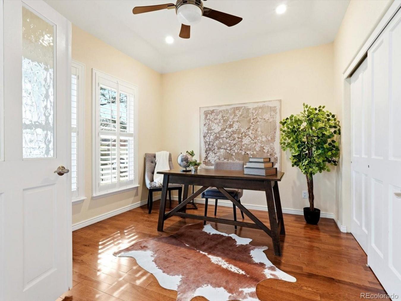 Tucked away at the end of a quiet cul-de-sac in Applewood, this beautifully maintained 4-bedroom, 4-bath home offers space, privacy, and an incredible list of features both inside and out. Backing to a privately owned drive, the setting feels exceptionally peaceful, with mature trees, thoughtful landscaping by a Colorado Master Gardener that blooms from spring through fall, and three separate landscaped yard areas with fencing thats ideal for pets, play, or entertaining. Theres even a designated vegetable garden, a custom-built treehouse, an RV parking pad, a freestanding custom shed, and an oversized 3-car garage complete with a car lift that allows you to store a 4th car. Inside, youll find hardwood floors, two sizable living areas, two fireplaces, a private main-floor office, and two en-suite bedrooms, offering flexibility for guests or multi-generational living. The updated primary bathroom adds a fresh, modern touch, just off the spacious primary bedroom that overlooks the grassy field. The luxurious kitchen with granite counters, a huge gas range, and pantry will impress any home chef. The finished basement offers a rec room, a bedroom with a built-in Murphy bed and matching dresser, another bedroom, and a 3/4 bath. Additional highlights include central air, a whole-house fan, solar screens, an oversized storage room with shelving, and a newer roof. This is a rare opportunity to own a home that combines function, comfort, and privacy in one of the areas most desirable neighborhoods!