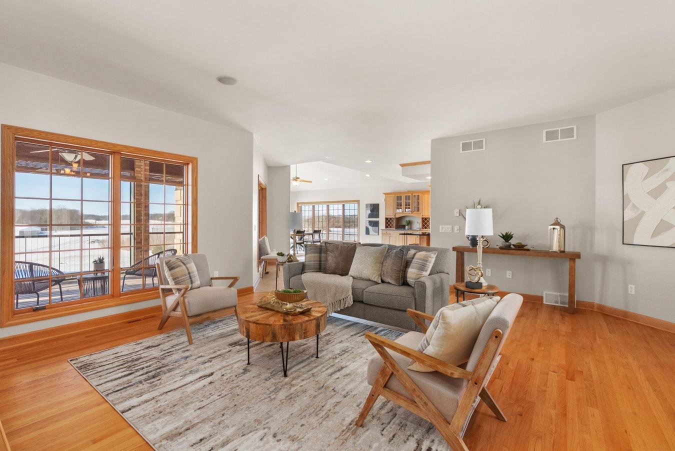 Enjoy refined country living on 16 acres just minutes from Oregon and Brooklyn. This executive all-brick ranch offers almost 6, 000 sq ft of space with an open flow, generous room sizes, and panoramic rural views. The chefs kitchen features a premium range, oversized island, and a wall of windows bringing the outdoors in.
