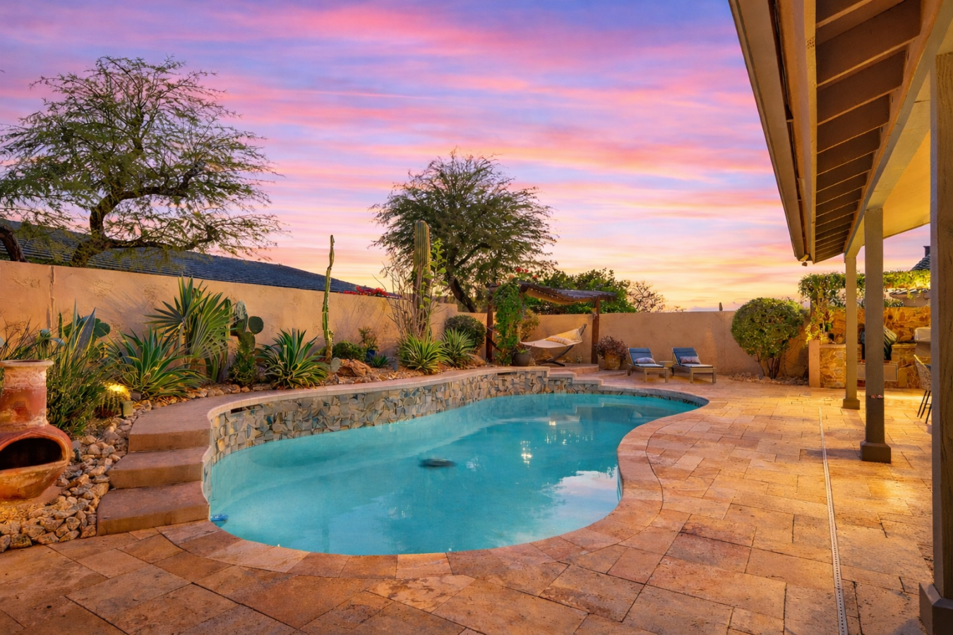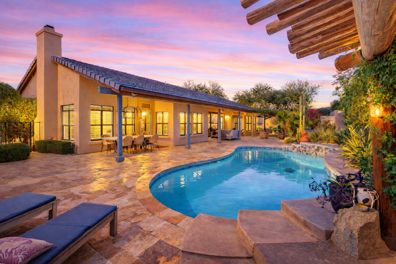 Resort-style living in the heart of North Scottsdale. This beautifully designed home offers an open great room floor plan that flows seamlessly into a spacious chefs kitchen with an oversized island, ideal for everyday comfort and effortless entertaining.