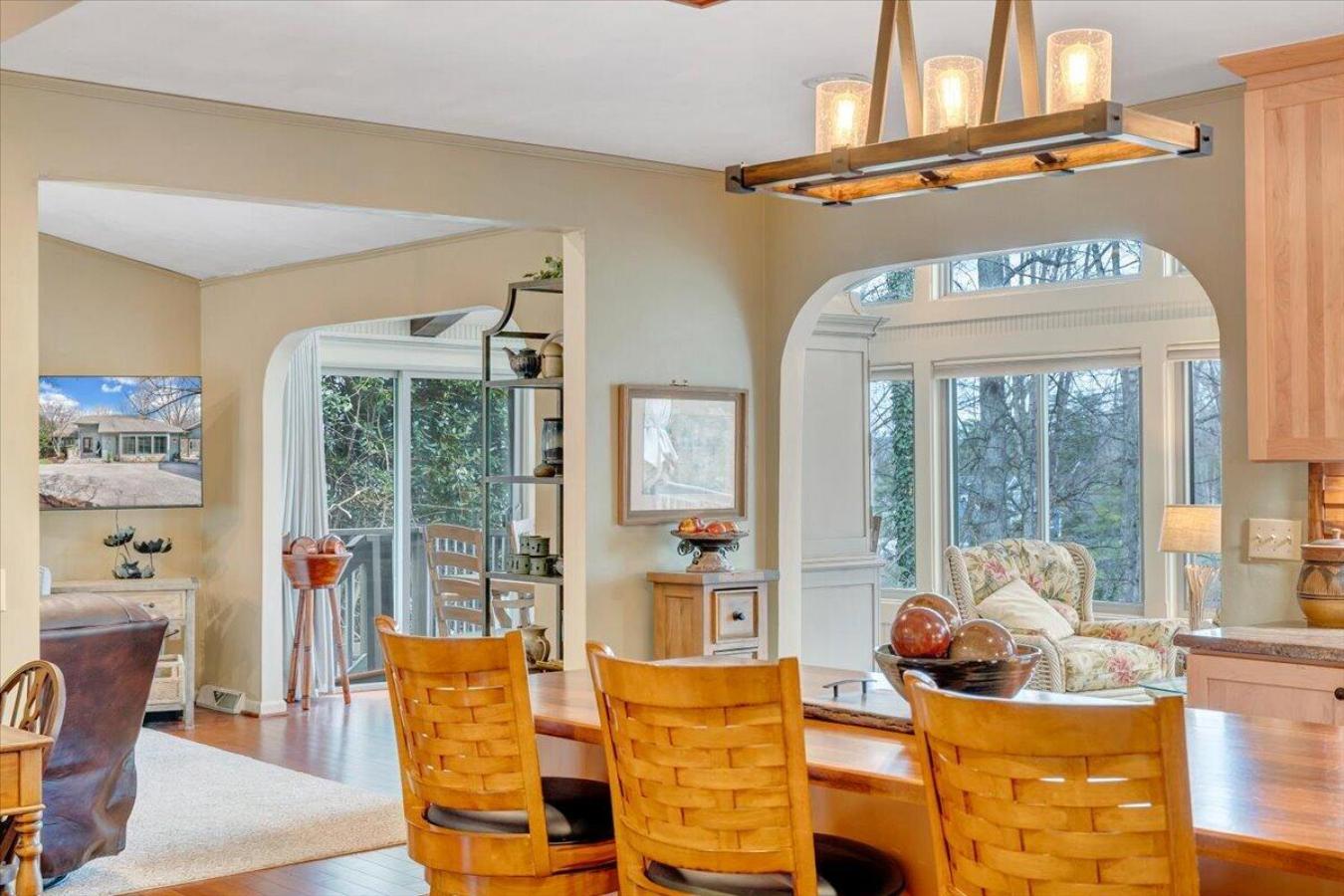Thoughtfully renovated lakefront retreat blending mountain-inspired warmth with relaxed lakeside living in the highly desirable Waterfront Country Club community. This inviting home offers a cozy feel with multiple sitting areas and generous living space designed for both everyday comfort and entertaining.
