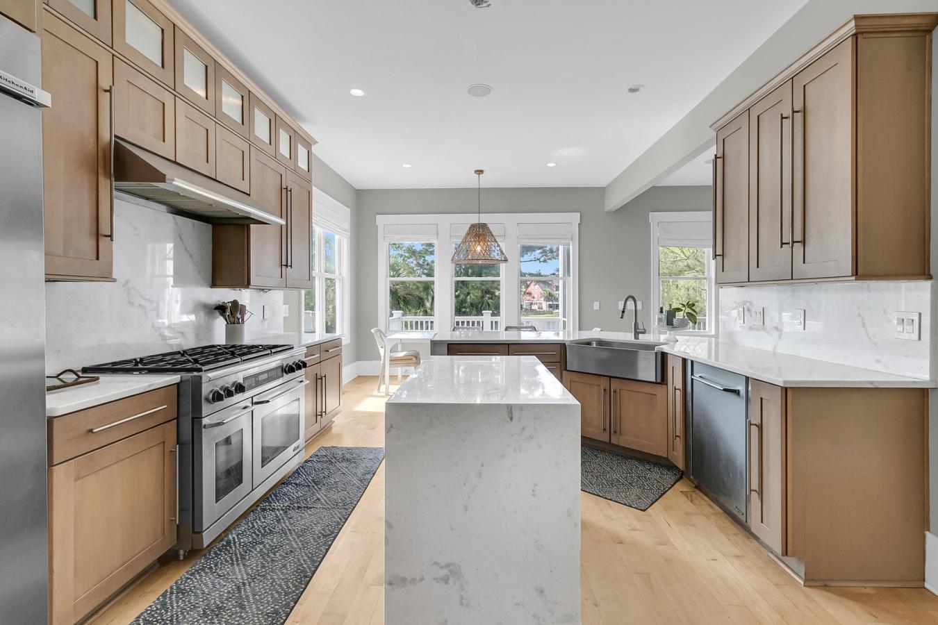 Welcome to The Pointe at Rivertowne, a sought-after section of one of Mount Pleasants favorite golf course communities. This elevated home sits on a beautiful lot with peaceful lake views AND has access to a private neighborhood dock--ideal for catching the sunset, picking up boaters, or casting a line. As you head up the stairs, gas lanterns flank the front door, setting the tone as you enter into a truly grand foyer with soaring ceilings and a sightline through to the water. To your left, a formal dining area opens to an open concept family room with a gas fireplace and built-ins. The eat-in kitchen features updated marble countertops and backsplash, a six-burner Dacor gas range and dishwasher, oversized refrigerator, and a center island plus counter seating. Just off the kitchen is a well equipped laundry room with marble countertops (perfect for folding clothes), storage cabinets, and room to tuck away pantry and drop zone items. The main floor primary bedroom provides peaceful views and access to the rear deck- perfect for enjoying your morning coffee. The ensuite bathroom features limestone flooring, a soaking tub, walk-in shower, and dual walk-in closets. Upstairs, youll find four additional bedrooms, two Jack-and-Jill bathrooms, and a generous bonus room with a bar, beverage fridge, and wine cooler. Step out onto the upstairs balcony and take in the sunset views -a great spot to relax and unwind without ever leaving home. Other highlights include: A 3-stop elevator White oak hardwood floors throughout Roof replaced in 2019 Three porches offering room to enjoy the outdoors The outdoor living space has amazing potential. The large backyard offers plenty of room for a future pool, firepit area, or custom backyard retreat making it a space youll never want to leave and one where friends will love to gather. The oversized garage can fit up to 8 vehicles and provides flexibility for recreation space, a home gym, or hobby workshop. Combined with a long driveway, this home easily accommodates parking for a large household or guests. Neighborhood amenities include The Pointes private dock with boat slips (available for 2-day use), plus access to Rivertowne Country Club featuring an Arnold Palmer Signature Golf Course, Junior Olympic-sized pool, tennis courts, play park, basketball court, clubhouse with restaurant and pro shop, and scenic walking and biking trails. Located just 20 minutes from both downtown Charleston and the beaches, and minutes from shopping, dining, award-winning schools, and medical care, this home offers space, function, and an opportunity to make it your own in one of the most scenic neighborhoods in town.