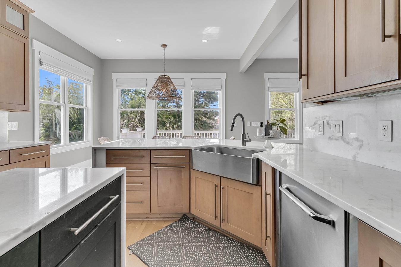 Luxury Coastal Retreat with Stunning Gulf Views & High-End Finishes. This breathtaking two-story coastal retreat is just steps from the Gulf and offers incredible 180 water views from multiple vantage points. Thoughtfully designed for energy efficiency and durability, this four-bedroom, 3.5-bath home combines high-end finishes, modern conveniences, and a prime location to create the ultimate beachside escape. Built on 32-foot in-ground cement pilings with hurricane-proof windows, hardy board siding, and a durable metal roof, this home is as strong as it is beautiful. Inside, an open floor plan with soaring ceilings and abundant natural light creates a bright, airy feel. The chefs kitchen is a true showpiece, featuring quartz countertops, custom Woodlane cabinetry, top-of-the-line stainless steel appliances, and generous counter space. Thoughtfully designed for both function and style, it serves as the perfect gathering space for friends and family. Both the downstairs and upstairs master suites offer private en-suites, ensuring comfort and convenience for owners and guests alike. Eight-foot doors, luxury finishes, and a wraparound porch with all-weather decking add to the homes sophisticated charm. Situated on oversized lot with ample covered parking, this property has beach access, allowing you to enjoy the sugar-white sands just steps from your front door. Sold fully furnished, this is a rare opportunity to own a turn-key slice of paradise. Schedule your private showing today and experience the coastal lifestyle at its finest!