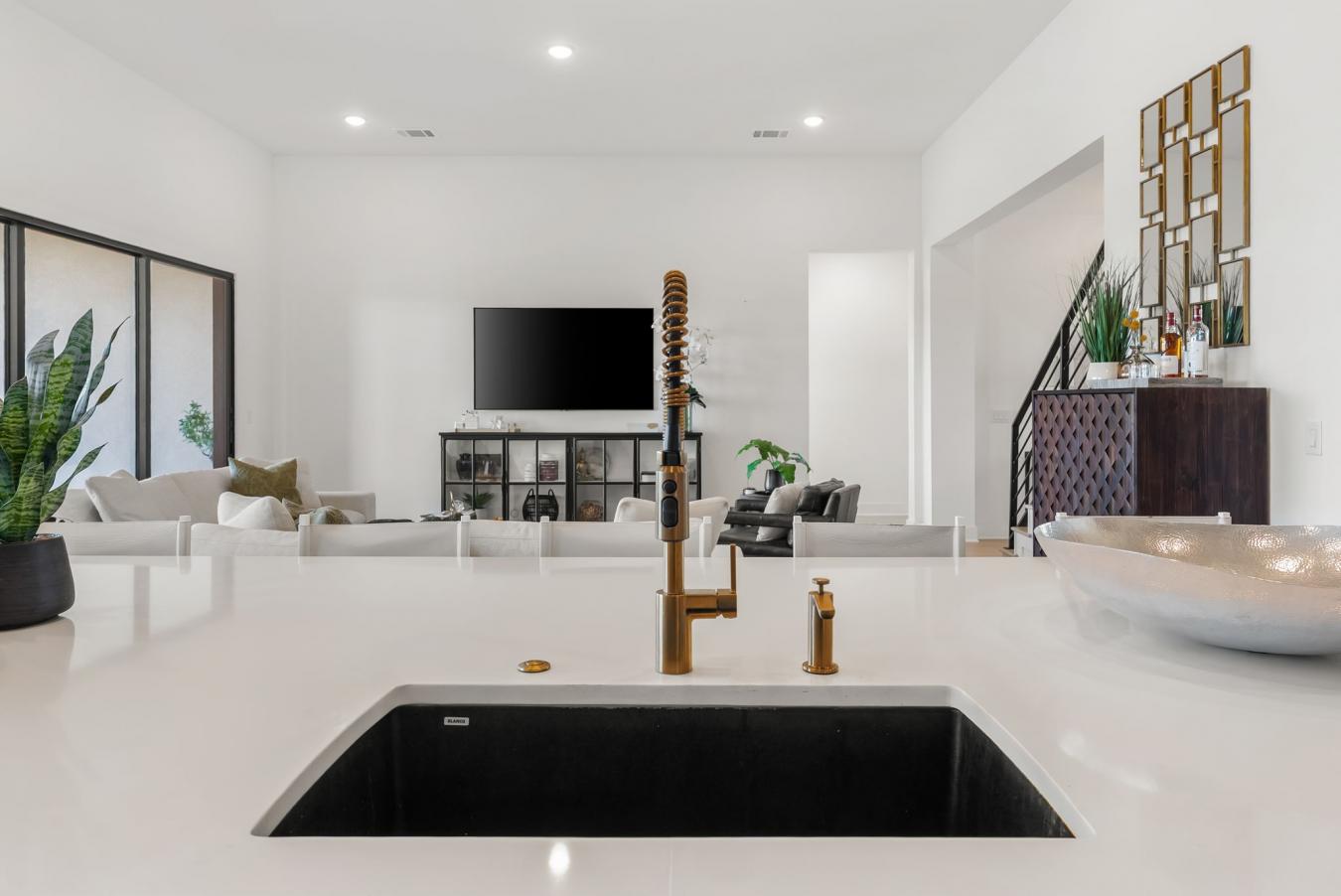 Elegant architecture and modern functionality come together in this Somerville plan by Drees Custom Homes, located in the community of Provence. Entering through striking French doors, you are welcomed into an expansive foyer with soaring ceilings and wood flooring. To the left sits a home office with a walk-in closet, and to the right is a private en suite bedroom, ideal for guests or multigenerational living. The home opens to a light-filled family room flowing into the kitchen and dining. The chefs kitchen features a large island, custom cabinetry, designer tile backsplash, and extensive counter space. Kitchen upgrades include a gas range and double ovens, with a walk-in pantry and a butlers prep area. Just past the kitchen, a hallway leads to the garage, mud area, half bath, and an extensive laundry room with a sink, storage, and room for an additional refrigerator. The dining room opens to the extended covered patio, while the living room features a 3-panel sliding door, creating a seamless indoor-outdoor living experience. The first floor also includes the primary suite with a spa-inspired bath featuring a soaking tub, oversized walk-in shower, dual vanities, and generous closet space. The primary bath also includes a frameless glass shower with multiple shower heads, including a rain shower. Upstairs, the second level offers exceptional flexibility with 3 additional bedrooms, 3 full bathrooms, and multiple entertainment spaces for family or guests. A large flex room with a wet bar opens directly onto the extended balcony. Within this area is a dedicated media room, ideal for movie nights or game day entertaining. The Somerville plan offers open-concept living with seamless indoor-outdoor entertaining. The community pool is centrally located and offers a covered patio, a clubhouse, and a playground next door. With easy access to shopping, dining, entertainment, downtown, the airport, outdoor recreation, and wineries, now is the perfect time to call Provence home.