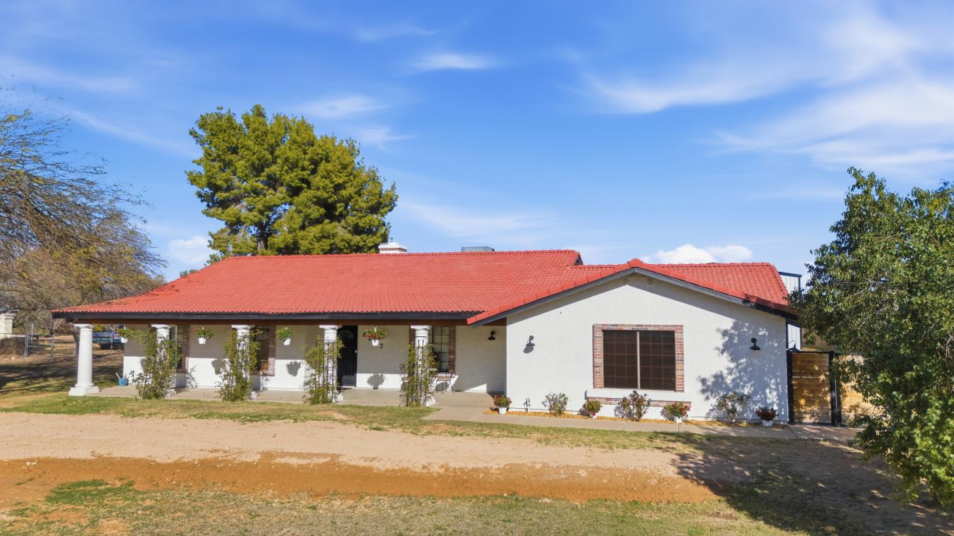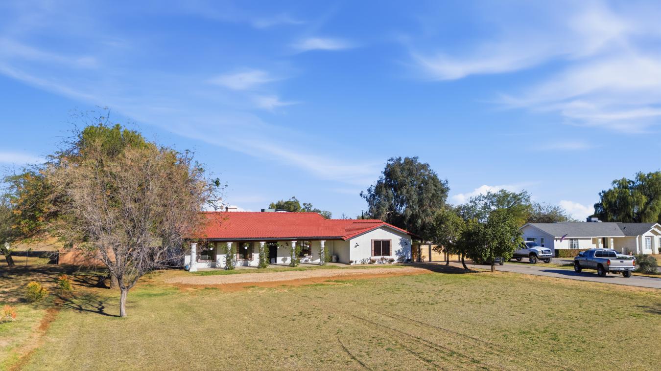 A Farmhouse Dream Fully Realized-Where Rustic Elegance Meets Modern Luxury Welcome to your own private countryside sanctuary, where timeless farmhouse charm meets elevated modern living. Set on 2 lush, irrigated acres, this fully renovated farmhouse estate offers the rare opportunity to enjoy refined rural living with the space, privacy, and versatility that todays discerning buyers desire. From the moment you arrive, the property exudes warmth, character, and craftsmanship. The home has been thoughtfully and meticulously renovated, blending the soul of a classic farmhouse with the sophistication of contemporary design. Inside, youll discover light-filled living spaces, carefully selected finishes, and a layout designed for both everyday comfort and effortless entertaining. Every detail has been curated to preserve the homes original charm while introducing the quality and modern conveniences expected in todays luxury homes. Step outside, and the property truly comes to life. The expansive 2 irrigated acres create a private oasis where possibilities are limited only by imagination. Whether you envision a flourishing garden, a boutique hobby farm, equestrian potential, or simply room to breathe under Arizonas open skies, this property offers the freedom to live exactly the way you want. For those who demand exceptional workspace or storage, the impressive 4,000-square-foot fully insulated garage/shop stands as a rare and remarkable feature. Outfitted with three oversized garage doors and a powerful 200-amp electrical panel, this extraordinary structure was built for serious enthusiasts. Whether youre a car collector, craftsman, entrepreneur, or hobbyist, the space provides year-round comfort and the capacity to support virtually any project, collection, or business venture. The setting is peaceful and private, yet the property remains conveniently positioned for access to nearby amenities, offering the perfect balance between country tranquility and modern convenience. This is far more than a home-its a lifestyle estate, designed for those who appreciate space, craftsmanship, and the freedom to create something truly special. Opportunities like this are rare. Experience the beauty, versatility, and quiet luxury of farmhouse living at its finest.