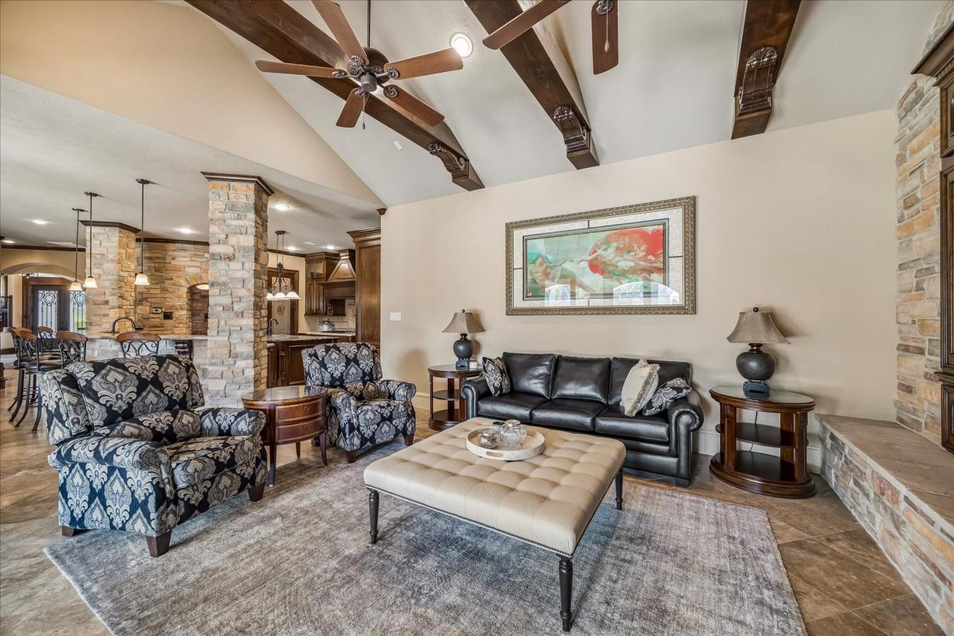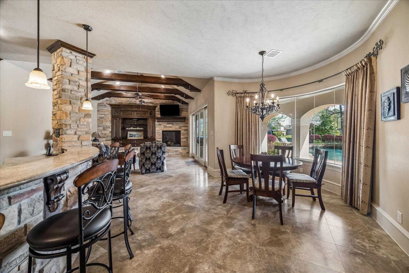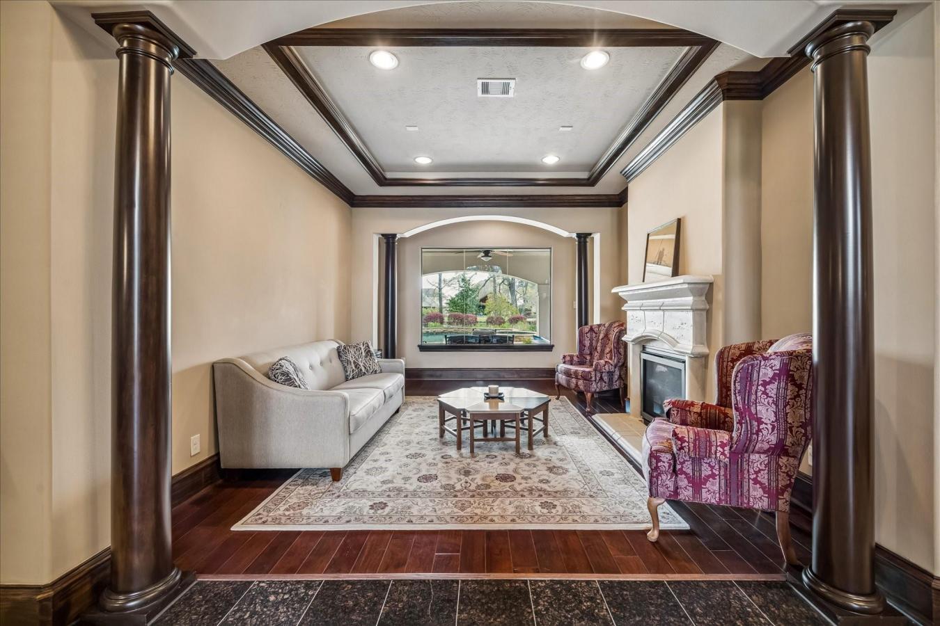 Welcome to 21010 Kings River Pt, a stunning home on 1.118 acres in the prestigious gated Kings River community of Kingwood. *This elegant 5,958 sf 5-bdrm home w/4 full baths & 2 half baths has thoughtfully designed living spaces.* A gracious entry leads past a formal dining room, living room & wine grotto to the gourmet kitchen & great room. *These areas blend seamlessly into the main living & dining rooms.* They create an ideal layout for everyday living & entertaining. *The primary suite offers a spacious bdrm w/a double walk-in shower, plus his & her walk-in closets.* This home offers a 2nd bdrm & full bath down & 3 bdrms w/2 full baths up w/a game room, half bath, balcony & media room. *Outside, enjoy the pool & expansive outdoor living space w/a summer kitchen, surrounded by mature trees & a pond view w/fountain, offering privacy & close proximity to top-rated Kingwood schools, dining, shopping & Lake Houston recreation.* This home is a must-see, *plus it has lockable firearm storage.* Amenities are too numerous to list.