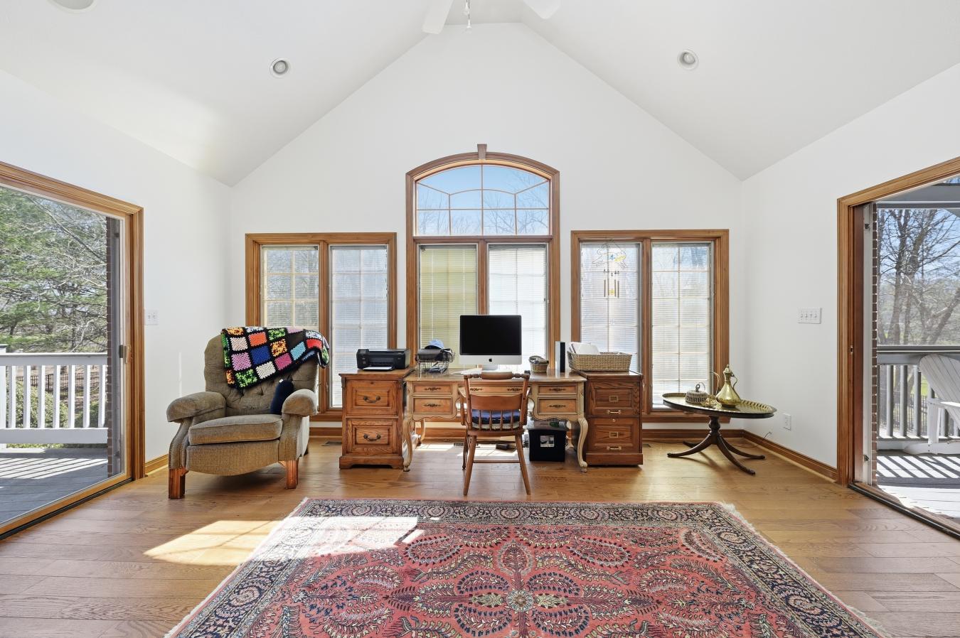 Thoughtfully placed on over four acres, with mature native growth alongside strategically cultivated trees and flowering landscaping, and surrounded by similar estates, this property provides a retreat for all ages. Multiple decks and patios, both open and enclosed, a beckoning 30,000 gal lap pool with an unfinished pool house, a multi-level tree house, and a fenced area offer private outdoor recreational enjoyment year-round. The grand foyer presents guests immediately with an unrestricted and flowing floor plan and more attributes than can be listed here. Warm oak, classic ceramic, and textured carpet floors carry feet through expansive and cultured rooms with soaring ceilings, Pella windows and doors, gourmet and high-end fixtures, automated skylights, masonry fireplaces, shelf-lined walls, walk-in closets, and sequestered living spaces. From the formal dining room to the cozy hearth area resting between the open kitchen and breakfast room, an ease of living is observed. Contrarily, the finished walk-out basement and attic areas offer nearly independent additional living and working spaces, some of which have potential for alternative future purposes. This estate presents casual sophistication, solitude, and accessibility, in close proximity to a golf course, conservation club, winery, event venue, shopping, schools, and much more. Dont miss this opportunity to fall in love!