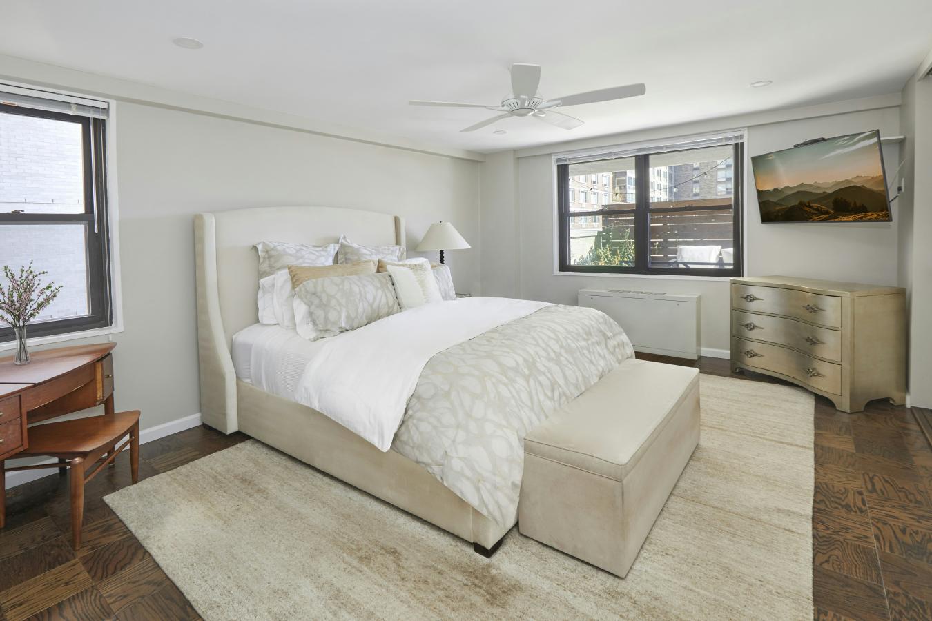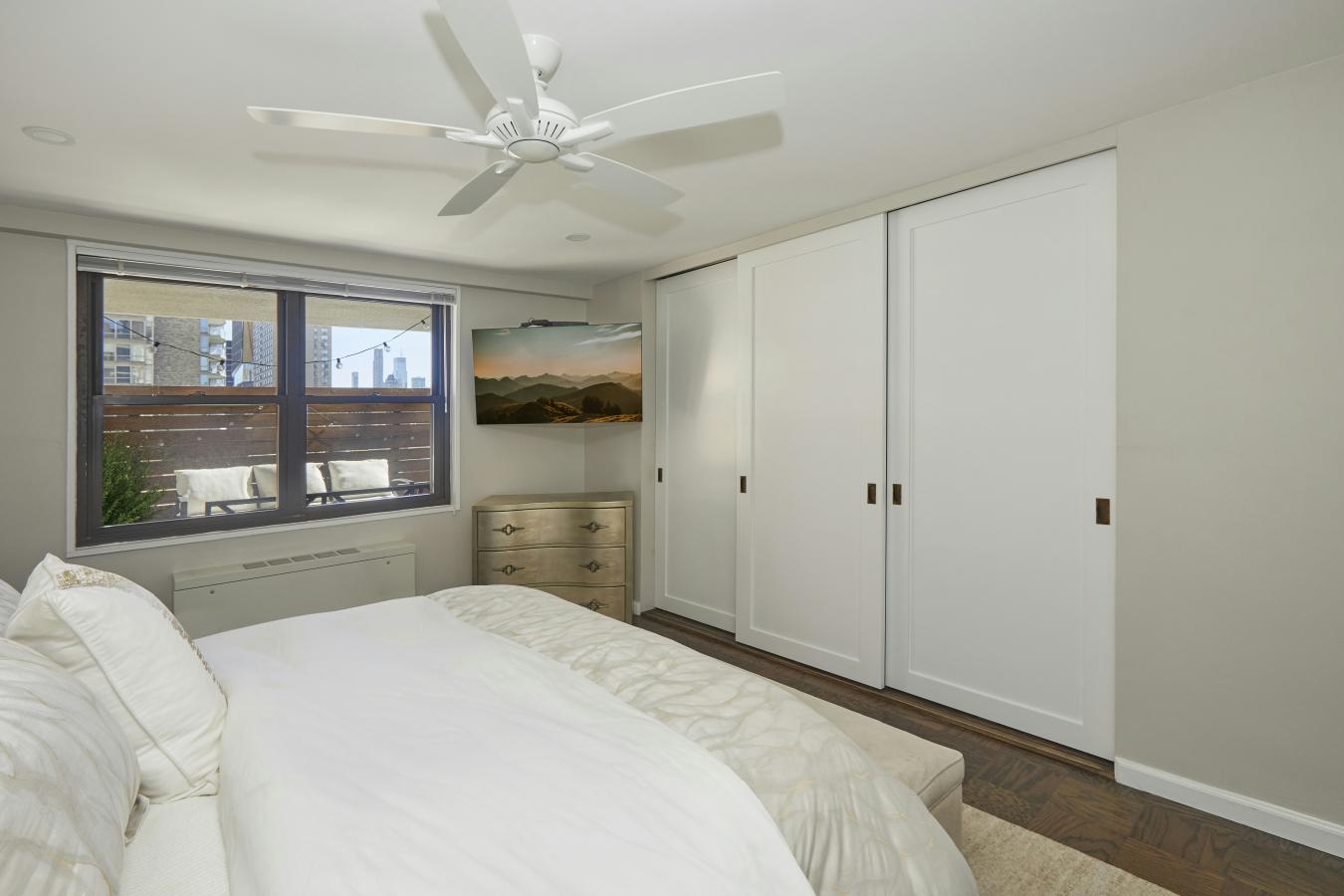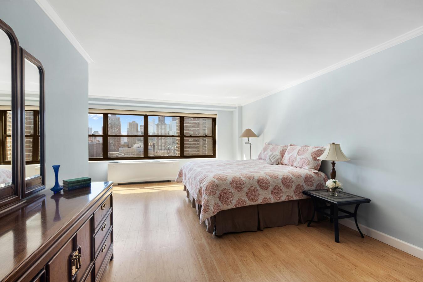 High-Floor Convertible 2-Bedroom with Iconic Views 31st Floor Perched high on the 31st floor, this architecturally refined convertible 2-bedroom, 1.5-bath residence offers a rare combination of sophisticated design and panoramic views. With expansive exposures to the north, east, and northwest, enjoy sweeping vistas of the East River, Manhattan skyline, and beyond-while the private terrace provides sun-drenched southern views that stretch all the way to the World Trade Center. Sophisticated Interiors Designed for Modern Living: Gracious entry foyer offers flexibility-ideal as a sitting area or home office. Seamless open-concept living/dining space, perfect for entertaining Custom chefs kitchen featuring designer-crafed cabinetry white quartzite countertops, a mother-of-pearl tile backsplash, and top-tier stainless steel appliances by Liebherr and Monogram. Wide wood-plank flooring throughout, lending warmth and contemporary elegance High-end recessed and designer lighting fixtures enhance every space Primary Suite Sanctuary: Generously proportioned with ample closet space Renovated, windowed en-suite bath featuring a soaking tub, glass-glazed ceramic tiles, and luxurious five-fixture finishes Additional Highlights: Private terrace with commanding skyline and river views Excellent closet space and thoughtfully integrated storage throughout. This is a rare opportunity to own a high-floor, high-design home where every detail has been curated for elevated city living. White glove service awaits you at the CHURCHILL as you enter into a cul-de-sac driveway, beautiful landscaped grounds and greeted by friendly welcome staff. Amenities include: 24 hour door staff, concierge, new fitness center, sauna, residents lounge, newly renovated landscaped rooftop decks with incredible views, an outdoor pool, valet services, bicycle storage, and parking in building. The Churchill is a Cond-Op with condominium rules; investor purchases and subletting permitted without a waiting period. Ideally located in close proximity to markets, shopping, dining, Grand Central and other convenient transportation options. Dog friendly with weight limit. Assessment 612.98 until 10/31/2026.