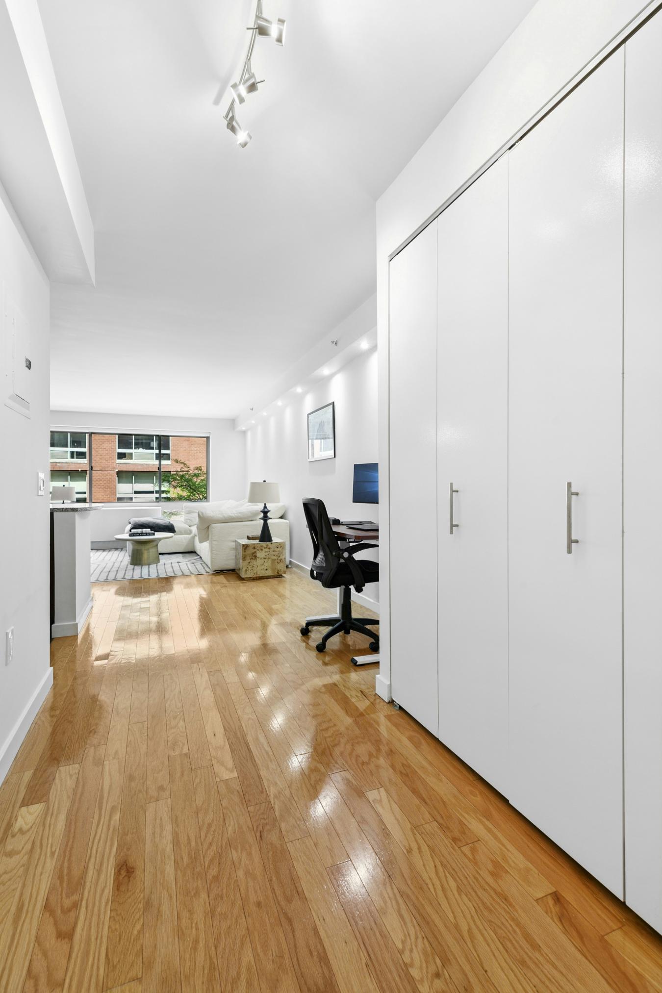 Rare Opportunity at Lincoln Towers Sun-Flooded Convertible Home with In-Unit Washer/Dryer This exceptional residence is a seamless combination of two oversized studios, creating a uniquely spacious and highly versatile home. With eight south-facing windows, the apartment is bathed in beautiful natural light throughout the day and offers stunning twinkling cityscape views in the evening.