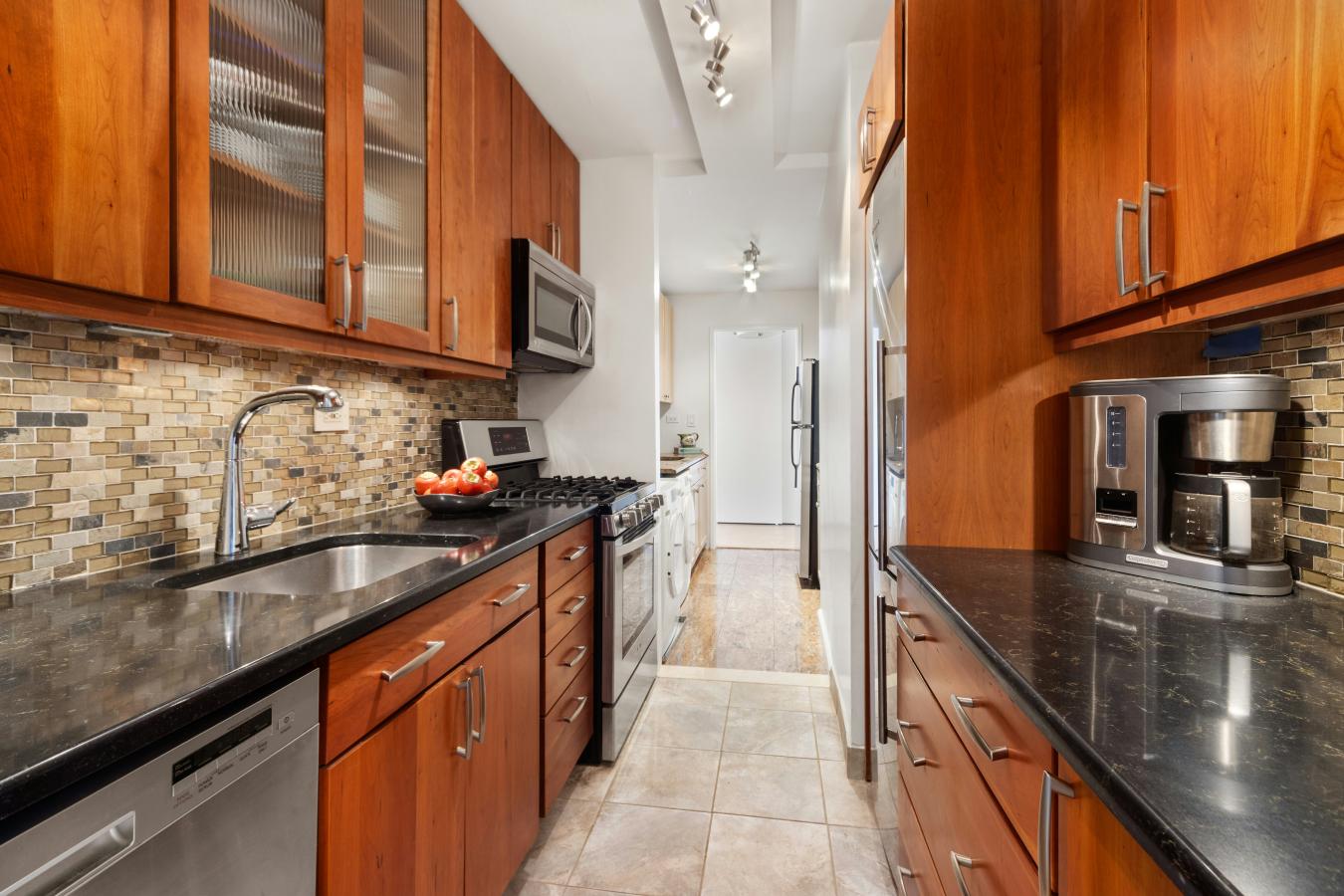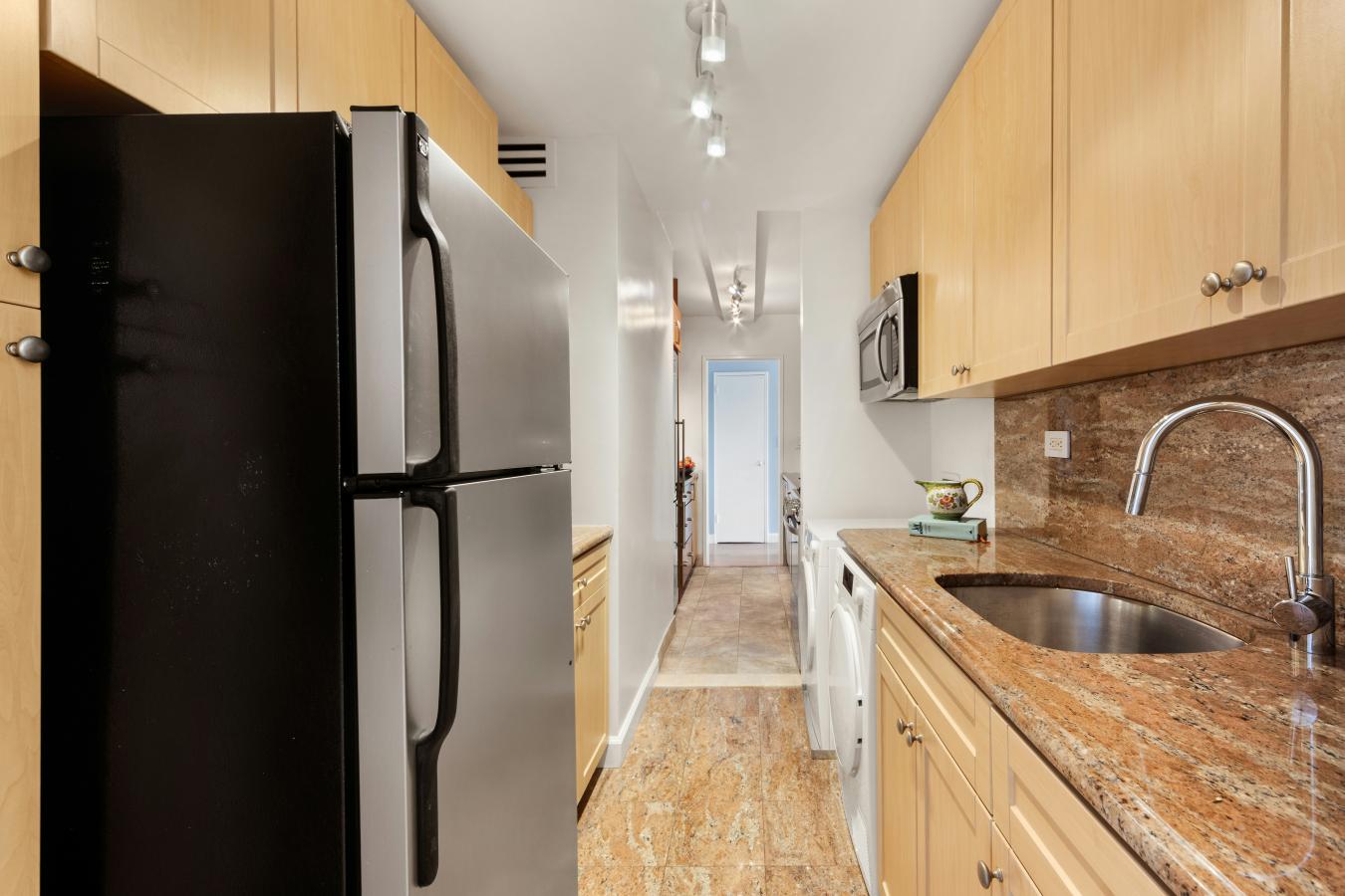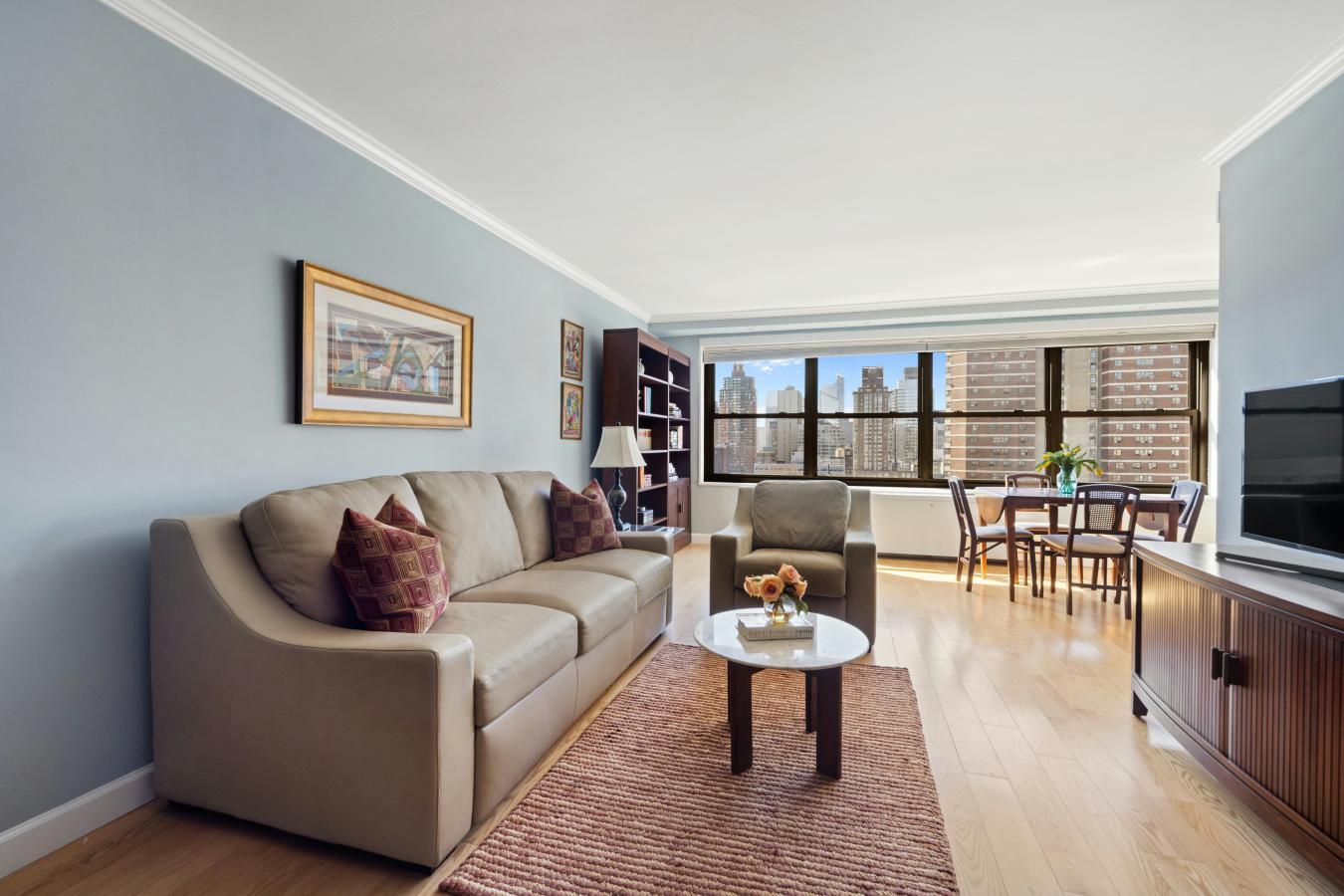 Rare Opportunity at Lincoln Towers Sun-Flooded Convertible Home with In-Unit Washer/Dryer This exceptional residence is a seamless combination of two oversized studios, creating a uniquely spacious and highly versatile home. With eight south-facing windows, the apartment is bathed in beautiful natural light throughout the day and offers stunning twinkling cityscape views in the evening. This magnificent home provides extraordinary light, space, and flexibility within one of the Upper West Sides most sought-after communities. Currently configured as an expansive one-bedroom, the layout offers remarkable flexibility. With minimal changes, the apartment can easily be transformed into a two-bedroom-or even a three-bedroom-residence, making it ideal for a wide range of living needs. The home features new wide-plank flooring throughout, walls in excellent condition, and a beautifully appointed modern kitchen. A second kitchen has been thoughtfully reimagined to accommodate a full-size Miele washer and Miele dryer, adding modern convenience while preserving the apartments versatility-an exceptionally rare and coveted feature in Lincoln Towers. Additional highlights include two large walk-in closets, expansive living space, two dressing areas, and soffit lighting. Elegant barn doors lead to two spa-like bathrooms that further enhance the comfort and functionality of the home. The generous footprint offers endless possibilities to customize the layout and design to suit your lifestyle-move right in or create the dream home youve always envisioned. 140/142 West End Avenue is a full-service cooperative located within Lincoln Towers in the heart of the Upper West Side. The building offers a 24-hour doorman, fitness center, playroom, bike room, storage, and central laundry. Residents of Lincoln Towers enjoy access to a private multi-acre park featuring landscaped gardens, a playground, basketball court, and pickleball. Ideally situated near Lincoln Center, Riverside Park, Central Park, multiple bus and subway lines, and the best shopping and dining the Upper West Side has to offer. Maintenance includes gas and electric. Additional ongoing assessment of 121.50 First Showings Sunday March 15th 12:30 - 2:30 by appointment.