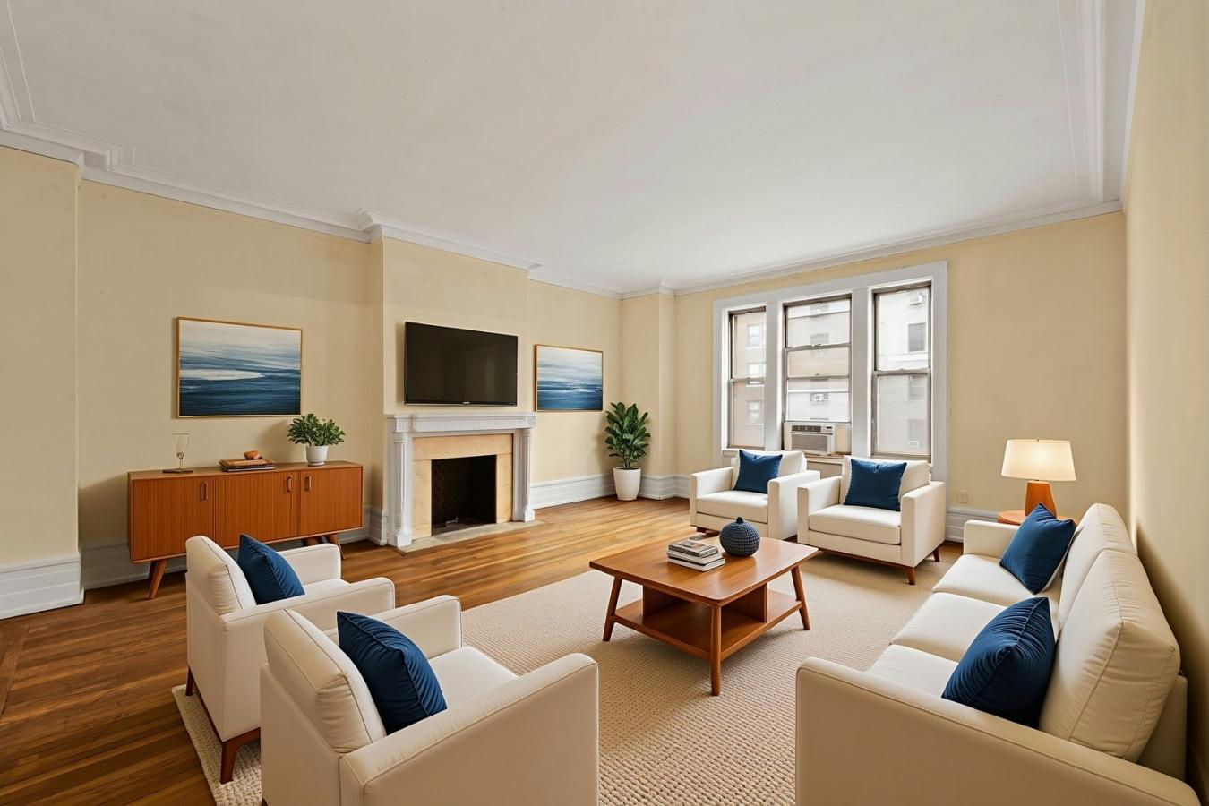 Apartment #5A is an elegant and expansive two-bedroom, two-bathroom prewar residence defined by its exceptional proportions. Rich in original detail, this home has 10-foot ceilings, oversized windows, and herringbone hardwood floors. A welcoming entry foyer leads to a grand living room of impressive scale, featuring a decorative fireplace and beautiful northern light. The thoughtfully designed split-bedroom layout offers excellent privacy. The primary bedroom is truly oversized, bathed in southern light, and includes a second decorative fireplace. Both bathrooms are windowed, and the home also features a separate dining area and a sizable windowed kitchen. Facing both north and south, this bright and gracious home overlooks one of the prettiest and quietest stretches of West 86th Street, lined with distinguished prewar cooperatives. This is a true estate-condition offering, presenting a rare opportunity to restore and customize a home of this caliber to its full prewar grandeur. With board approval, the installation of a washer/dryer and central air conditioning is permitted. Designed by the esteemed architectural firm Mulliken & Moeller, 320 West 86th Street is an intimate, full-service cooperative comprising just 30 residences. Residents are welcomed by an ornate entryway leading to a beautifully appointed terra cotta lobby. Building amenities include a live-in superintendent, bike room, private storage, and laundry facilities. Pied--terres are permitted (case by case), and the building is pet-friendly. Ideally situated just half a block from Riverside Park, the location offers easy access to the best of the Upper West Side, including shopping, dining, and transportation along Broadway. West 86th Street is a serene, tree-lined block perfectly positioned between Riverside Park and Central Park, with excellent crosstown access via the 86th Street transverse and convenient connectivity to the West Side Highway.