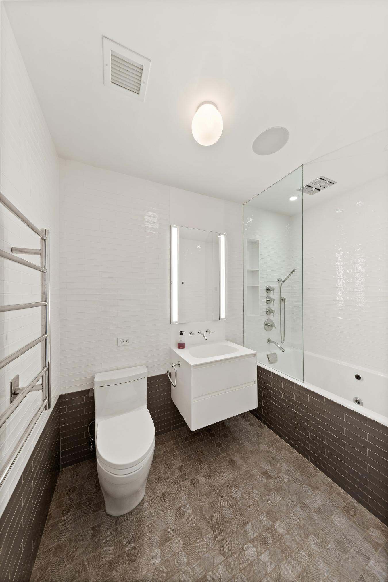 If you are looking for a turnkey apartment in pristine condition, welcome to Apartment 9G at 380 Lenox Avenue. This beautifully renovated two-bedroom, two-bathroom residence offers a serene and thoughtfully designed living space, open city views, and an exceptional level of finish throughout. Upon entry, you are welcomed by nearly 10-foot ceilings, solid oak hardwood floors, and an abundance of natural light from an unobstructed west-facing exposure overlooking Central Harlem all the way up to the historic towers of City College. The spacious living and dining area is ideal for both everyday living and entertaining, and is enhanced by custom solid oak built-ins including shelving and a media center. The renovated chefs kitchen is both elegant and highly functional, featuring quartz countertops, abundant walnut and white lacquer cabinetry, and top-of-the-line appliances including a Sub-Zero refrigerator, Miele gas range, cooktop and microwave, and a Bosch dishwasher. A deep sink and custom lighting complete the space. The primary corner bedroom enjoys double exposures to the west and north, filling the room with exceptional light. It features a fully built-out walk-in closet with custom shelving and drawers. The en-suite bathroom is beautifully finished in crisp white tile and includes a deep Kohler soaking tub with jets, heated floor, and a heated towel rack. The second bedroom is generously proportioned and easily accommodates a queen-size bed, while also serving beautifully as a home office or den. The second bathroom is finished in marble and offers a spa-like experience with a luxurious steam shower with built-in seating, heated floor, and a heated towel rack. Additional highlights of the home include a Lutron smart lighting system, a Sonos sound system with in-ceiling speakers, individually controlled PTAC units in each room, and an in-unit washer and dryer. 380 Lenox Avenue offers a full-time doorman, live-in superintendent, fitness center, roof deck, a supermarket in the building, and an on-site parking garage (fee). Located in the heart of Harlem near the vibrant 125th Street corridor, residents enjoy easy access to Whole Foods, Trader Joes, renowned restaurants including Red Rooster, Sylvias, and Corner Social, as well as excellent transportation via the 2/3, 4/5/6, and A/B/C/D subway lines, Metro-North, and multiple bus routes. Owners also benefit from a 421-A tax abatement currently in place through 2033. With exceptional light, high-quality finishes, and thoughtful upgrades throughout, Residence 9G offers a rare combination of comfort, functionality, and sophisticated design. Assessment of 235/month for LL11 until December 2026.