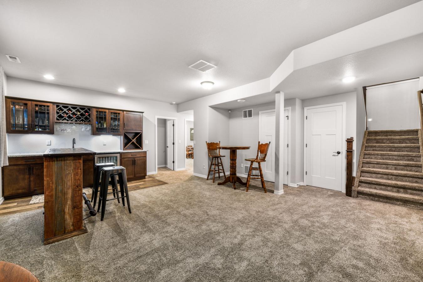 Welcome to this exceptional 5-bedroom, 3-bathroom home nestled on a sprawling 1.33 acre lot in the highly desirable Meridian Ranch community. Located in a newer neighborhood, this property offers the perfect blend of modern upgrades, spacious living, and room to enjoy the outdoors, all while showing like its brand new. Step inside to discover a thoughtfully designed layout featuring a formal dining room and a gourmet kitchen outfitted with stunning quartz countertops, a giant island, and upgraded soft-close cabinetry. This beautifully appointed kitchen is perfect for both everyday living and entertaining. A cozy gas fireplace anchors the open-concept living space, creating a warm and inviting atmosphere. Retreat to the expansive primary suite, where youll find a luxurious zero-entry shower, incredible upgraded cabinetry, and beautifully finished tile work that creates a true spa-like experience. Two additional bedrooms and main-level laundry complete the main level. The expansive basement is an entertainers dream, offering a huge open layout complete with a wet bar and an entire wall of cabinetry ideal for hosting gatherings, movie nights, or creating your own private retreat. The basement also features two additional bedrooms and a large storage room. This property truly shines when it comes to garage and storage space. In addition to six total garage parking spaces, the attached 48-foot RV garage is fully insulated and incredibly versatile, perfect for use as a tandem garage, workshop, or storage for large vehicles. It also features a 50-amp plug, making it ideal for RV use or electric vehicles. An additional detached 24x30 two-car garage has 10-foot doors and provides room for additional storage. Outside, enjoy the expansive lot with a partially covered concrete patio perfect for relaxing or entertaining year-round. The property also includes a dedicated dog run and a fenced area designed specifically for trailers, UTVs, or other items.