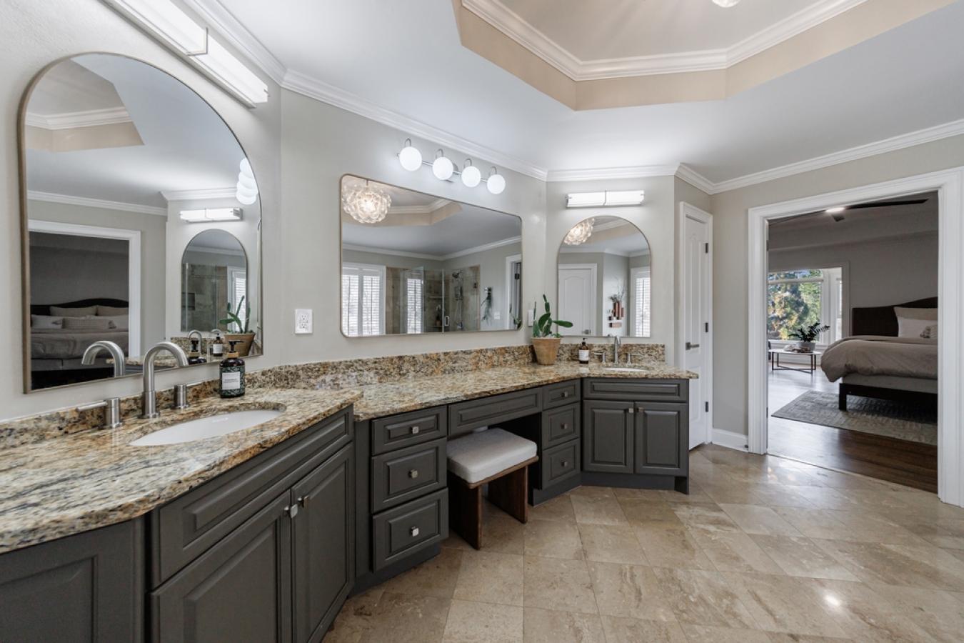 Experience the pinnacle of lakeside luxury at Bridgeview. This stunning, remodeled home boasts an impressive floorplan, with its emphasis on functionality, privacy and views. The two master suites are separated by the living space, with the additional large office providing a light-filled space to work.