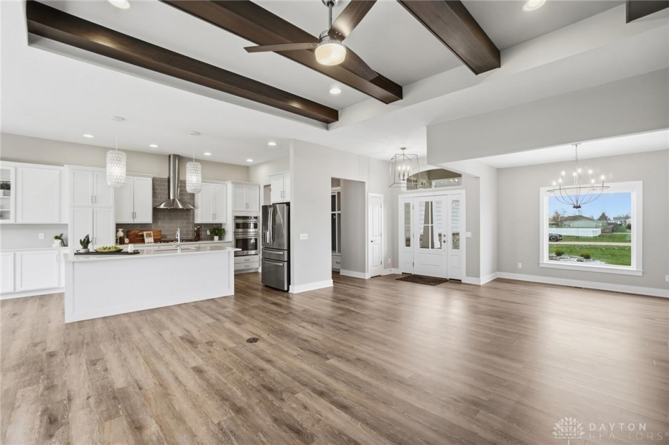 Dreaming of a ranch with space, flexibility, and no HOA? This beautifully designed ranch with a desirable split-bedroom floor plan sits on a scenic 1.78-acre lot, offering the perfect blend of comfort, privacy, and future potential. Inside, youll find a spacious and inviting great room featuring stunning stained beams, custom built-ins, and a gas fireplace, creating a warm and elevated focal point for everyday living and entertaining. The open layout flows seamlessly into a well-appointed kitchen offering abundant cabinetry, perfect for both everyday living and hosting. The kitchen is equipped with a gas cooktop, stainless steel vented hood, wall oven and microwave, and a stainless refrigerator. The primary suite is a true retreat, offering a double vanity, private commode, tile shower, a relaxing soaking tub, and custom California Closets for optimal organization. The finished lower level expands your living space even further, complete with a large recreation room featuring a wet bar rough-in-perfect for future entertaining. Youll also find a very spacious fourth bedroom with built-ins, ideal for guests, a home office, or multi-generational living. An oversized unfinished storage area provides excellent space for all your storage needs. Step outside and take in the possibilities. A vinyl privacy fence enhances the backyard, providing ample room for outdoor living, gardening, or future additions. Landscape beds and garden boxes are already equipped with irrigation, making maintenance simple. There is also a prime location at the end of the driveway ready for a barn, detached garage, or additional outbuilding. . Car enthusiasts and hobbyists will appreciate the 3-car side-load garage, complete with a mini-split system for year-round comfort. Whether youre looking for space to grow, room to build, or simply a private retreat with thoughtful upgrades throughout, this property offers a rare combination of quality, functionality, and long-term potential.