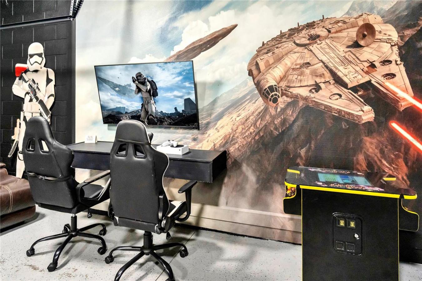 Discover OHANA OASIS, a newly curated 11-BEDROOM, 10-BATHROOM luxury retreat where elevated tropical design meets exceptional short-term rental performance. Located in the highly sought-after ENCORE at REUNION RESORT, just minutes from Orlandos world-renowned theme parks, this reimagined vacation home delivers island-inspired luxury, immersive design, and outstanding income potential-positioned to generate 120K net annually. Fresh from a comprehensive interior renovation (Dec 2025), the home showcases a cohesive upscale ISLAND-influenced aesthetic with a distinct Ohanadesign identity woven throughout. Every space has been transformed with new furnishings, fresh paint throughout, lighting, decor, artwork, and textiles, resulting in a bright, polished, resort-quality environment that photographs exceptionally well and commands premium nightly rates. Designed for large groups, the property features 9 ensuite bedrooms and three spacious primary suites (two on the first level and one upstairs). The open-concept great room seamlessly connects to the gourmet kitchen, offering 42" shaker-style cabinetry, granite counters, dual stainless-steel refrigerators and dishwashers, a coffee/wine bar, and an expansive dining area ideal for gatherings. Dual laundry rooms upstairs and down add further convenience. Professionally designed themed spaces elevate the guest experience. The Flamingo Suite delivers bold tropical styling with vibrant, photo-ready decor. The Lilo & Stitch inspired room carries the Ohana design story with fresh island elements and playful accents. Additional themed highlights include the Sail Away nautical bedroom and the always-popular Harry Potter room. A major showpiece is the climate-controlled Star Wars Game Room (2024 conversion), upgraded with arcade games, foosball, air hockey, Xbox gaming systems, and cozy theater-style seating -an exceptional entertainment zone that sets this property apart in online listings and enhances rental performance. Sliding doors open to the private outdoor oasis, featuring a heated pool and spa, a large paver patio, a spacious covered lanai, and a fenced, tropical-landscaped backyard designed for outdoor enjoyment from sunrise to sunset. Located a short walk from Encores exclusive amenities, youll enjoy access to a 10-acre waterpark with exhilarating slides, splash pad, poolside cabanas, fitness center, courts for tennis, volleyball, and basketball, a full soccer field, casual on-site dining & bar, concierge desk, and complimentary transportation to Disney, Universal & SeaWorld. The HOA covers internet, cable, landscaping, irrigation, pest control, community maintenance, and 24-hour manned security-simplifying ownership while maximizing returns. This home is COMPLETELY TURN-KEY, ready to start generating income from day one. With its high-impact redesign, immersive theming, prime location, and strong income projections, this home represents a rare opportunity to acquire a proven top-performing short-term rental asset. Fully furnished and completely turn-key, it is ready to generate revenue from the moment you close. Schedule your private showing today and experience the Ohana Oasis for yourself! For more information - Property Website: 7639Wilmingtonloop.com