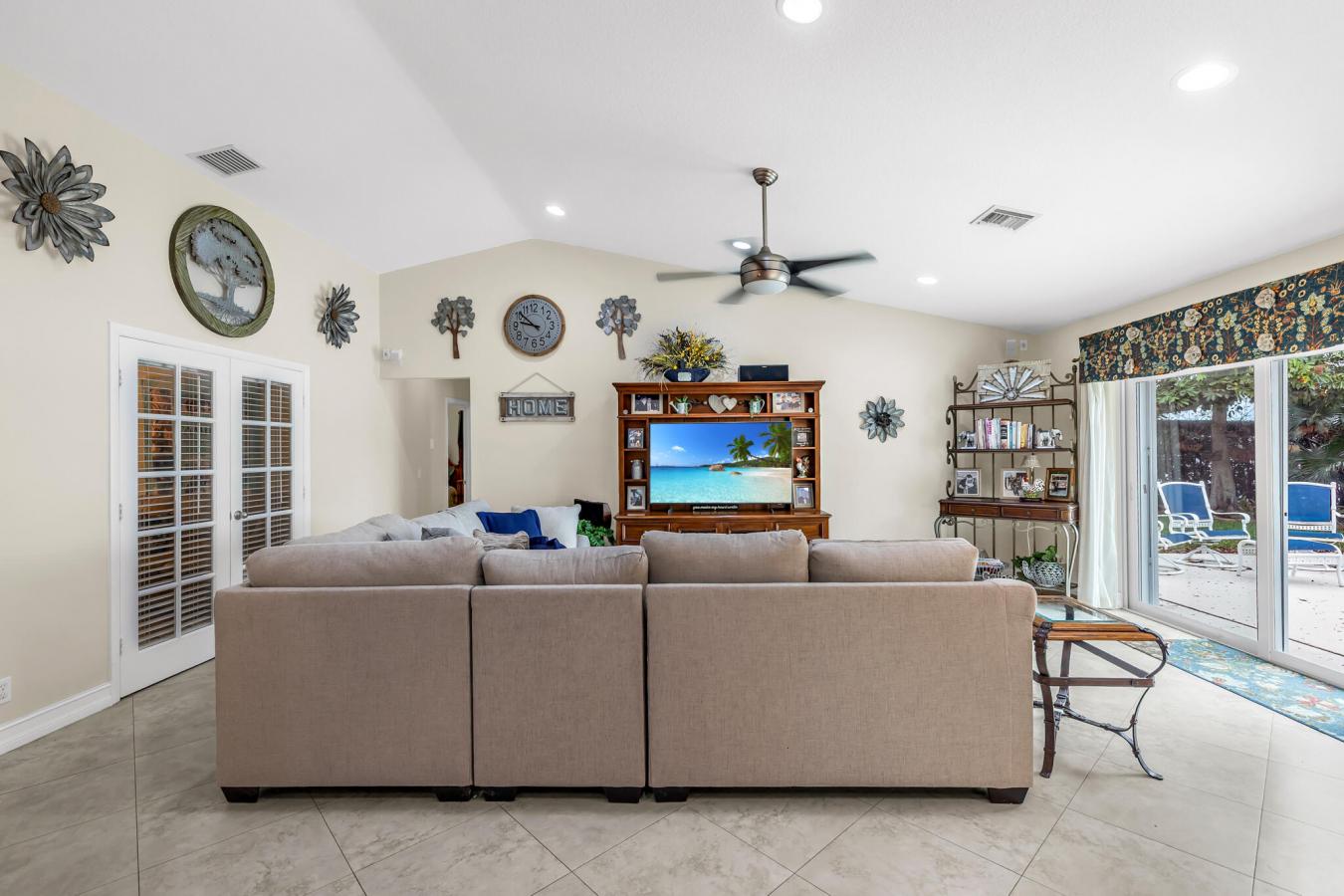 Rarely available lakefront home in desirable Ridgeview Estates, located within a top-rated school district. Situated on an oversized, private lot, this property offers expansive water views from nearly every room & features soaring vaulted ceilings that enhance the light and open feel throughout. The backyard is a true retreat featuring a resurfaced 30-ft pool, newly built covered & open patio spaces, and approx. 80 feet of waterfront with room to add a dock. Recent upgrades include full impact windows and doors, new A/C, an updated electrical panel, a new sprinkler system, an extended driveway, and an air-conditioned garage. Interior highlights include walk-in closets, an updated kitchen, and a renovated cabana bath. Additional storm protection includes an accordion wall enclosing the back patio. Low HOA of just 40 monthly. Exclusively listed by Kelsey Phinazee