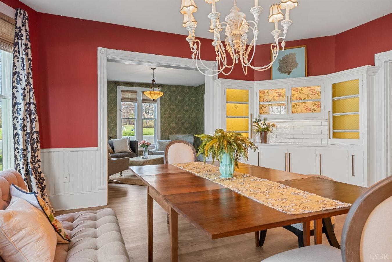 Step into a real-life fairy tale where timeless history and modern luxury meet. Originally built in 1860, this stunning Bedford estate sits on a rare 2-acre parcel in the heart of town and offers 5 bedrooms, 3.5 baths, 9 fireplaces, and 5,670 sq ft of beautifully curated living space. Grand rooms create an elegant setting for entertaining while preserving the homes historic character. The show-stopping kitchen features white cabinetry, a large center island with a farmhouse sink, a pot filler, a gas range, and stylish modern finishes. The home offers two spacious primary suites, including a spacious main-level suite ideal for multigenerational living. Spa-inspired bathrooms/wet rooms. Step outside to your own resort-style retreat with an inground saltwater pool, stone patios, charming outbuildings, and manicured grounds. Conveniently located just a short drive from the Blue Ridge Parkway and & Smith Mountain Lake, some of Virginias most beautiful destinations.