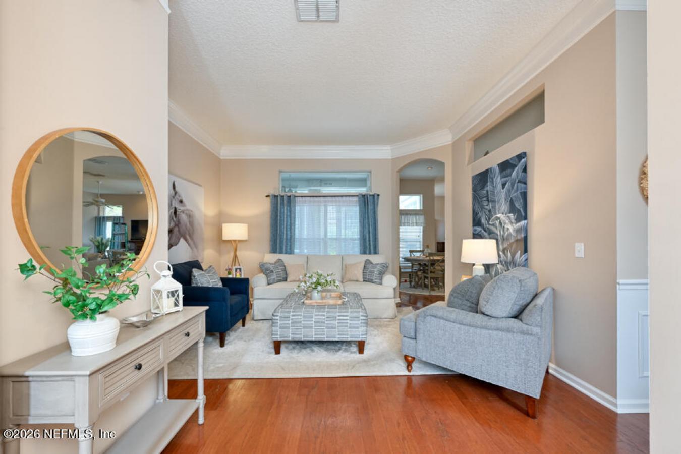 Very spacious 5-bedroom home in Jacksonville Beachs highly sought-after "Sanctuary," perfect for a growing family seeking comfort and a coastal lifestyle. This light-filled residence offers a flowing floor plan with soaring volume ceilings, a formal dining room, and an open family room and kitchen combination with a breakfast nook ideal for gatherings.