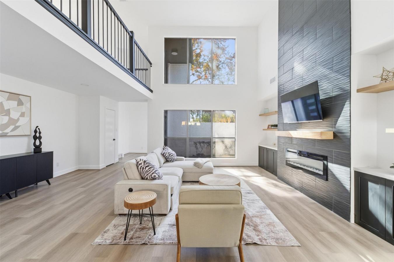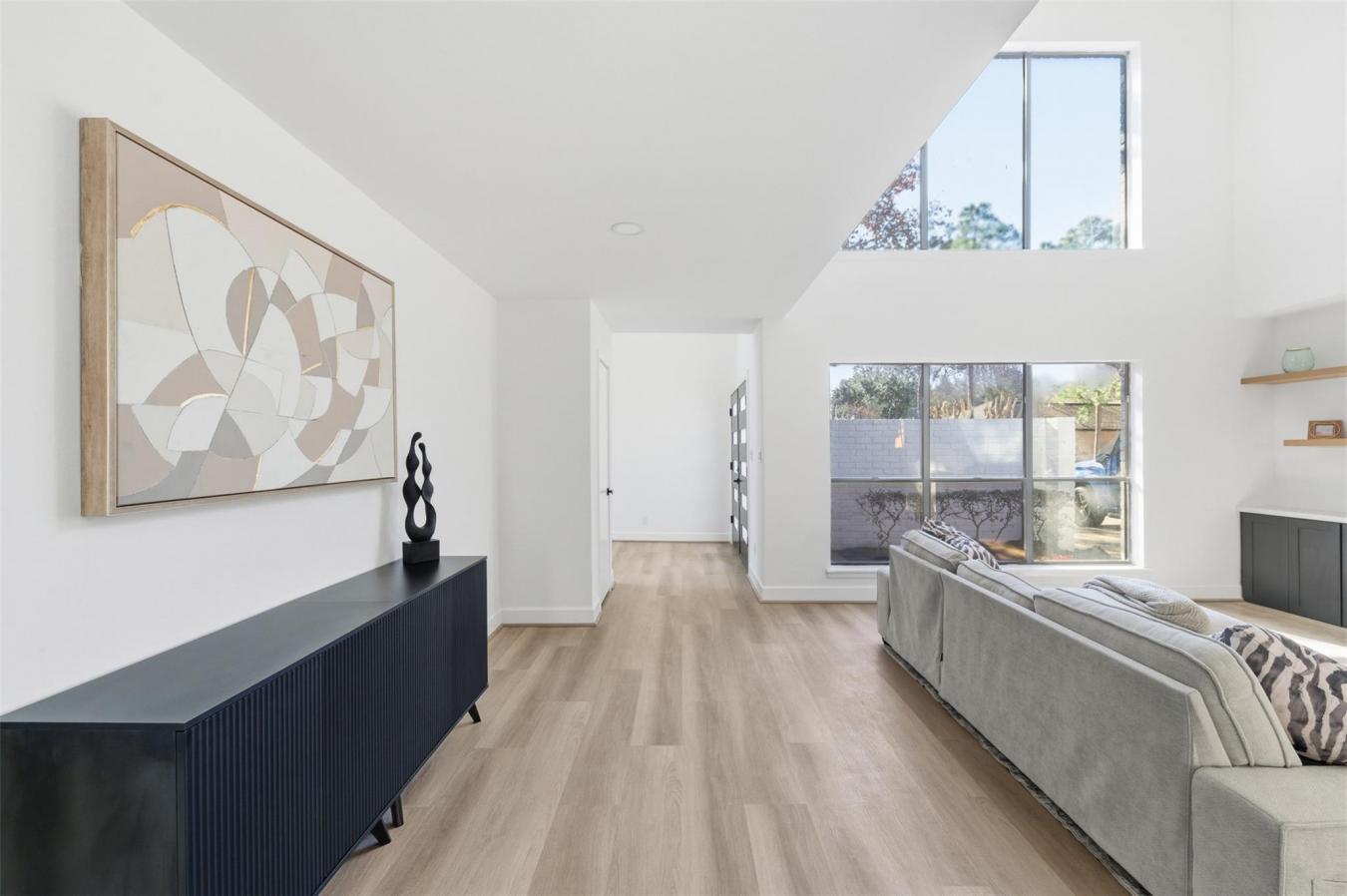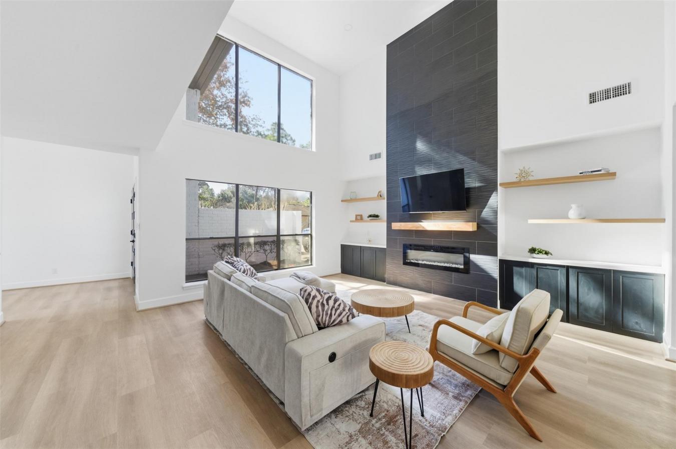 Fully remodeled 3-bdrm home in the highly desirable Barkers Landing neighborhood in the Energy Corridor. This light-filled home showcases stunning windows, modern design finishes, & a well-designed layout. Updates include new vinyl flooring, fresh drywall & interior paint, new recessed lighting throughout, & ceiling fans. The redesigned kitchen features new cabinets, a sink, a faucet, and a garbage disposal. Bathrooms have been fully updated with new vanities, sinks, toilets, tile, faucets, mirrors, lighting, new upstairs bathtubs, & updated PEX plumbing in bathrooms. A custom tile fireplace wall with an electric fireplace and new entertainment cabinetry creates a striking focal point. Additional upgrades include a new double front door, updated hardware, a new banister with steel spindles, two new HVAC systems, updated landscaping, fresh exterior paint, and a foundation adjustment with a transferable lifetime warranty. Move-in ready and close to shopping, dining, and major commuter routes.