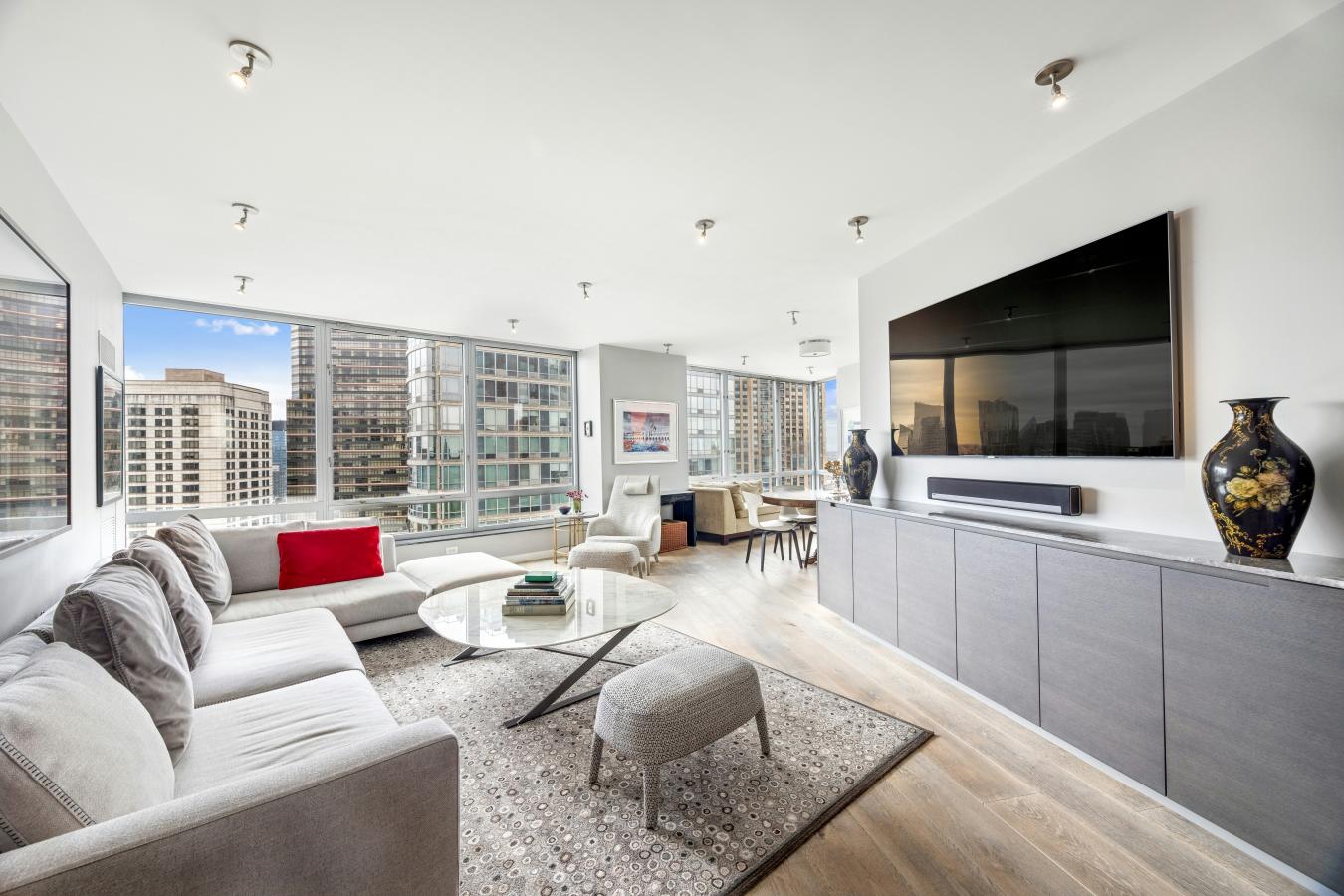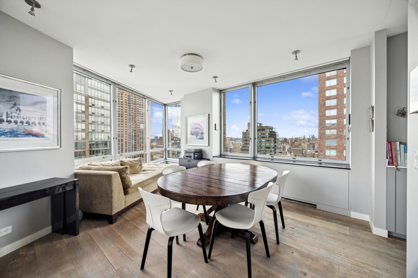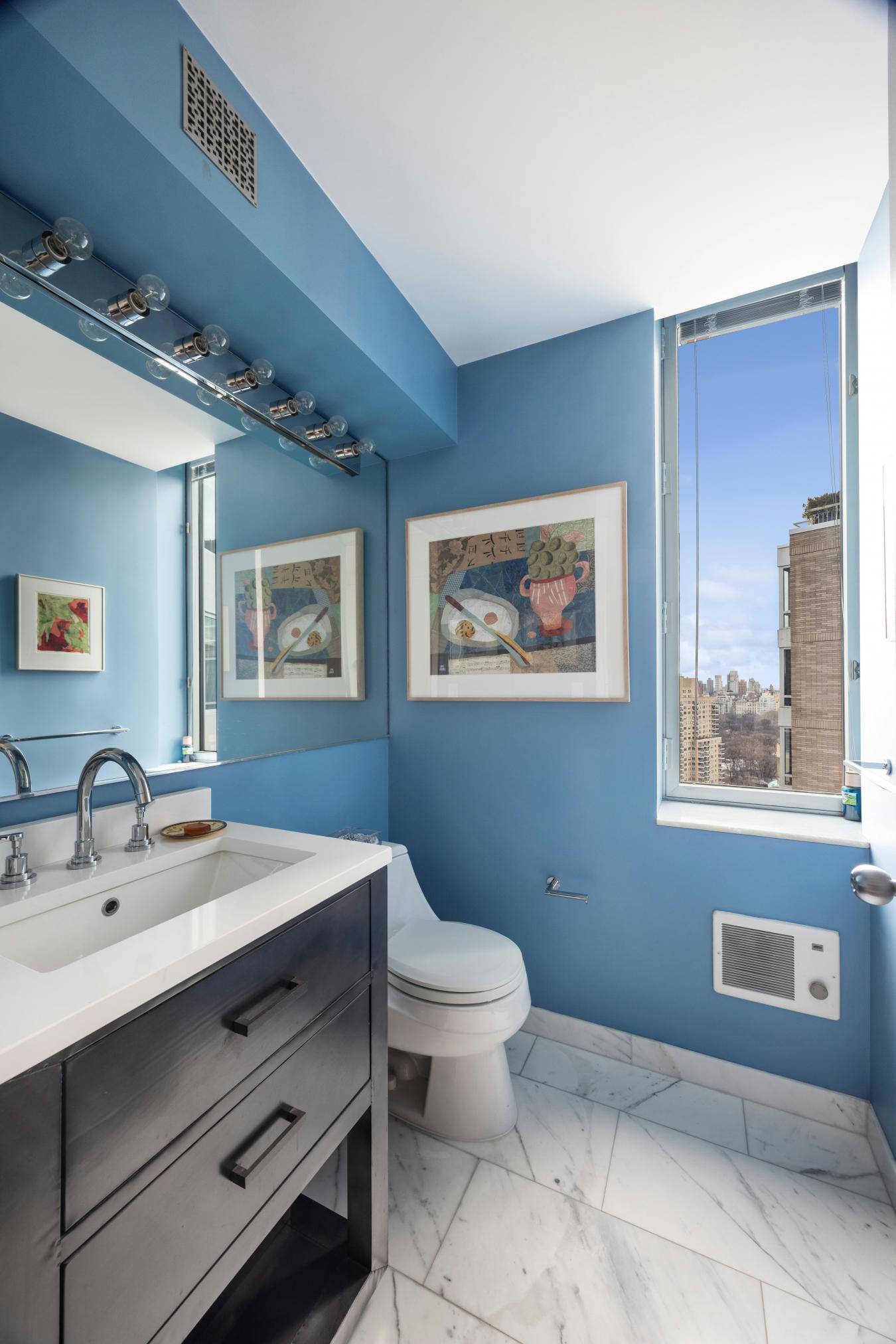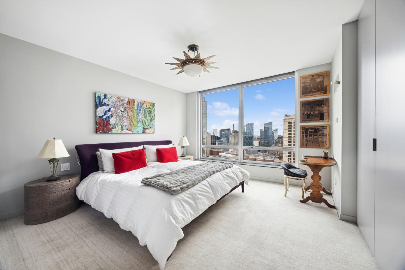 A DIAMOND IN THE SKY Residence 26A at 150 Columbus Avenue rises high above Lincoln Center, boasting sweeping views from One World Trade Center to the GW Bridge to Central Park. Perfectly positioned in the cultural heart of the Upper West Side and steps from world-famous restaurants and shops, this pristine two-bedroom, two-and-a-half-bath condominium offers panoramic skyline vistas from every room through expansive floor-to-ceiling windows with north, south and east exposures. A gracious, windowed foyer opens to a thoughtfully designed split-bedroom layout with the option of a convertible 3rd bedroom. The expansive living and dining room are bathed in natural light while the nighttime skyline provides a breathtaking backdrop for entertaining. The sleek chefs kitchen with stunning 180-degree views is beautifully appointed with custom Varenna/Poliform cabinetry, Corian and Statuarietto marble countertops and backsplash. It boasts a full suite of Sub-Zero and Wolf appliances, including state of the art induction cooktop, steam-convection oven, wall oven and an 86-bottle wine refrigerator. The serene primary suite features extensive custom-fitted Poliform closets and a spa-caliber five-fixture marble bath with double vanity and glass-enclosed shower. The secondary bedroom enjoys open city and Central Park views, exquisite built-ins and its own en-suite bath with soaking tub and floor to ceiling Italian marble tile. Additional highlights include 10-inch European White Oak floors, radiant-heated bathroom tile floors, motorized solar and blackout shades throughout, integrated LED lighting, abundant custom storage and built-in bar, windowed powder room and a vented washer/dryer. Just one block from Central Park and at the gateway to Lincoln Center for the Performing Arts, this pet-friendly condominium is reknowned for its superb 24-hour doorman and concierge service. Also known as One Lincoln Plaza, the building is situated at the crossroads of bus and subway lines that can transport you to anywhere in Manhattan in just 20 minutes.