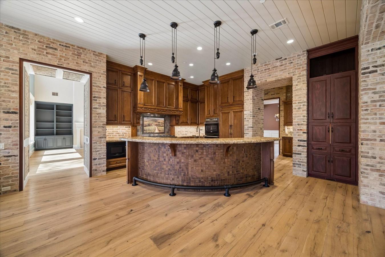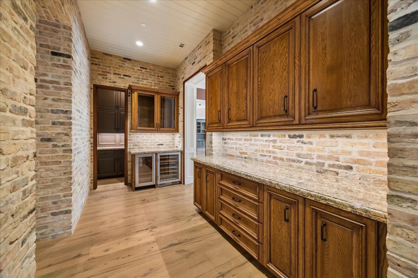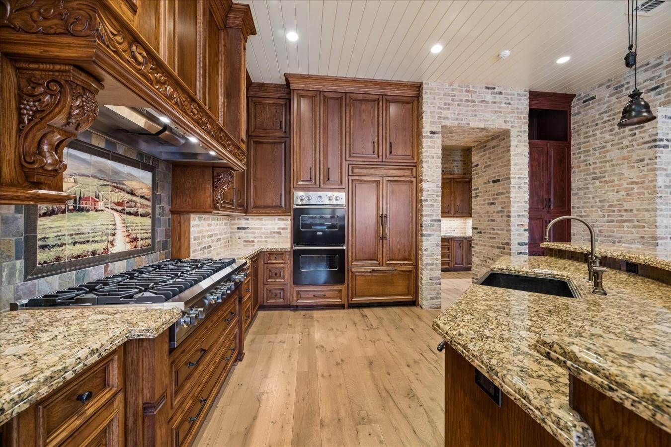 Elegantly designed custom home by John Sullivan & built by Abercrombie Builders, featuring 4 bdrms on a generously sized lot with a pool, summer kitchen, motor court & 3-car garage, all set in a quiet location in Bunker Hill Village. Notable details include reclaimed New England hardwood flooring and Old Chicago brick accents in the kitchen and breakfast & family room that offer the charm & warmth of an English pub. The gourmet kitchen is highlighted by a large granite-topped island with a custom foot rail & copper tile trim. A farmhouse sink carved from a single block of stone anchors the space, complemented by 2 dishwashers, double convection ovens & a hand-painted mural above the 8-burner gas cooktop. The family room features a dramatic cathedral ceiling with exposed solid wood beams. The primary suite overlooks the heated pool & backyard retreat. Additional features include a 50-year clay tile roof, circulating hot water system, central vacuum, whole-home carbon filtration system, & a full-house generator.