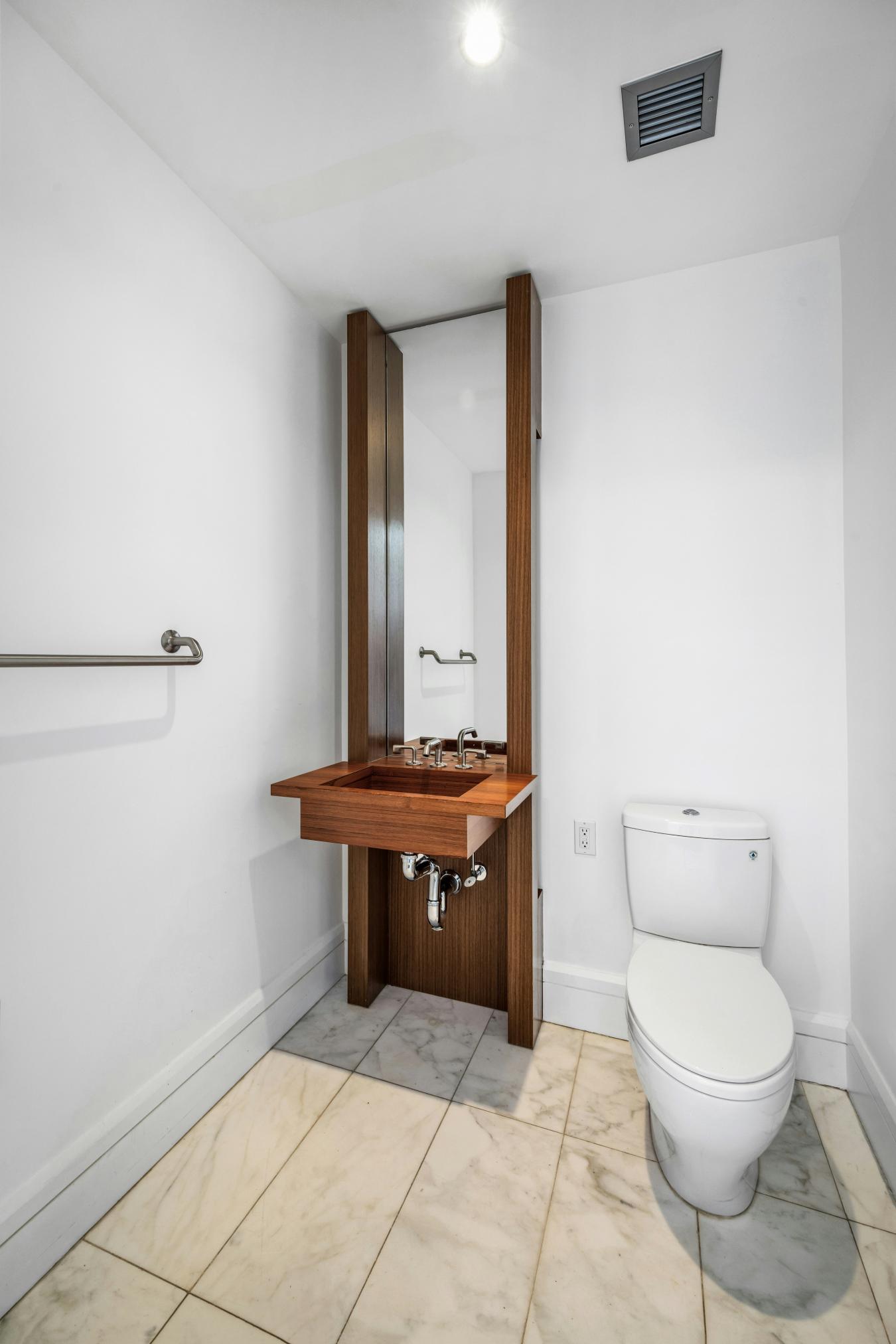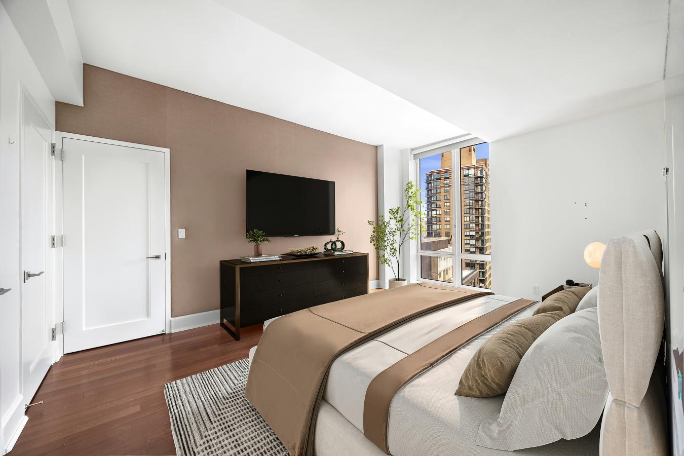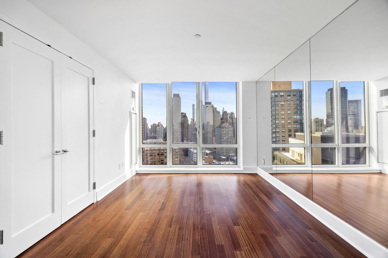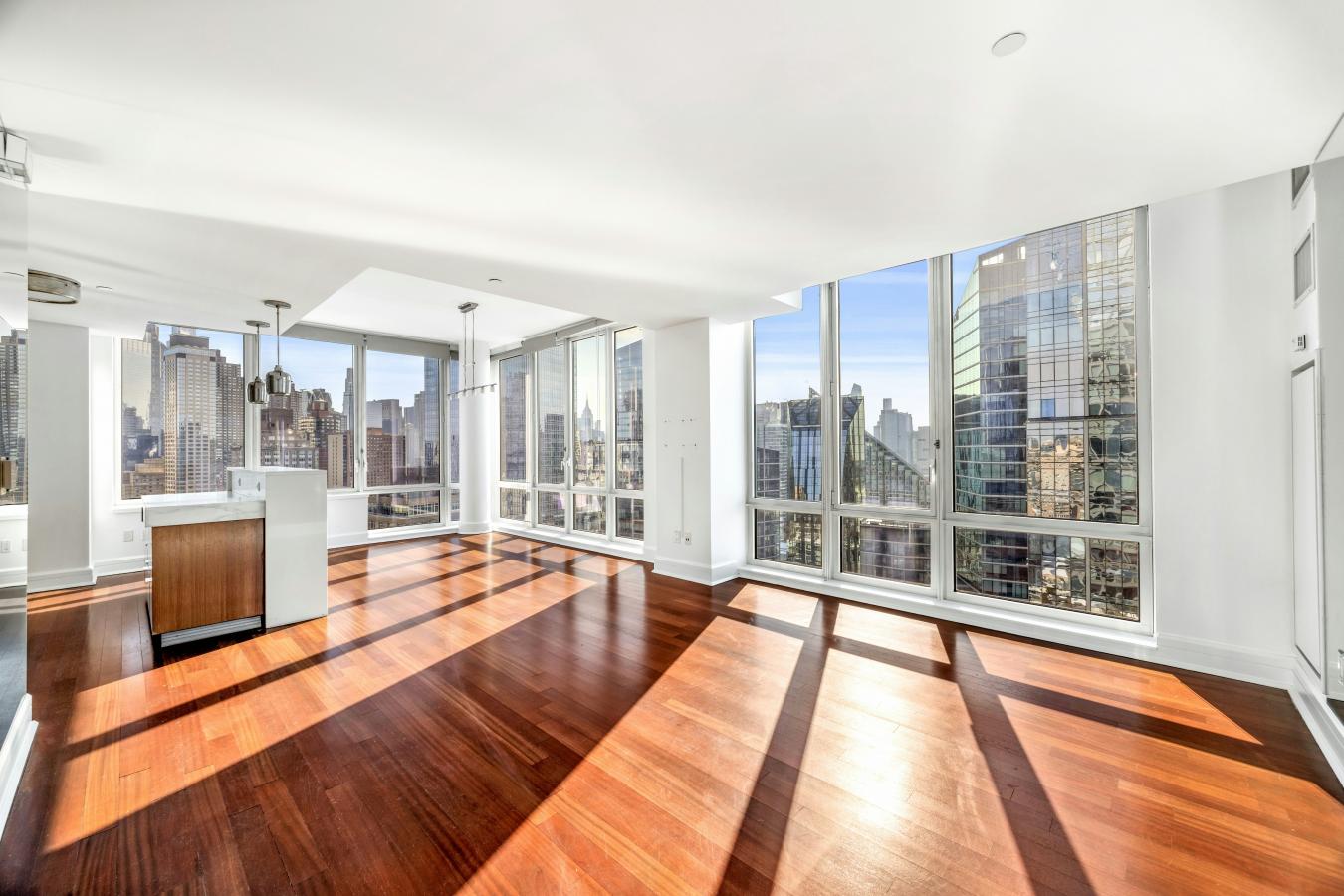 Unit 3004 at 60 Riverside Boulevard is a stunning corner home composed of two bedrooms and two-and-a-half bathrooms with picturesque open views stretching from the city skyline to the Hudson River. A spacious foyer perfectly separates the living spaces from the bedrooms, and is complete with a powder room and coat closet.