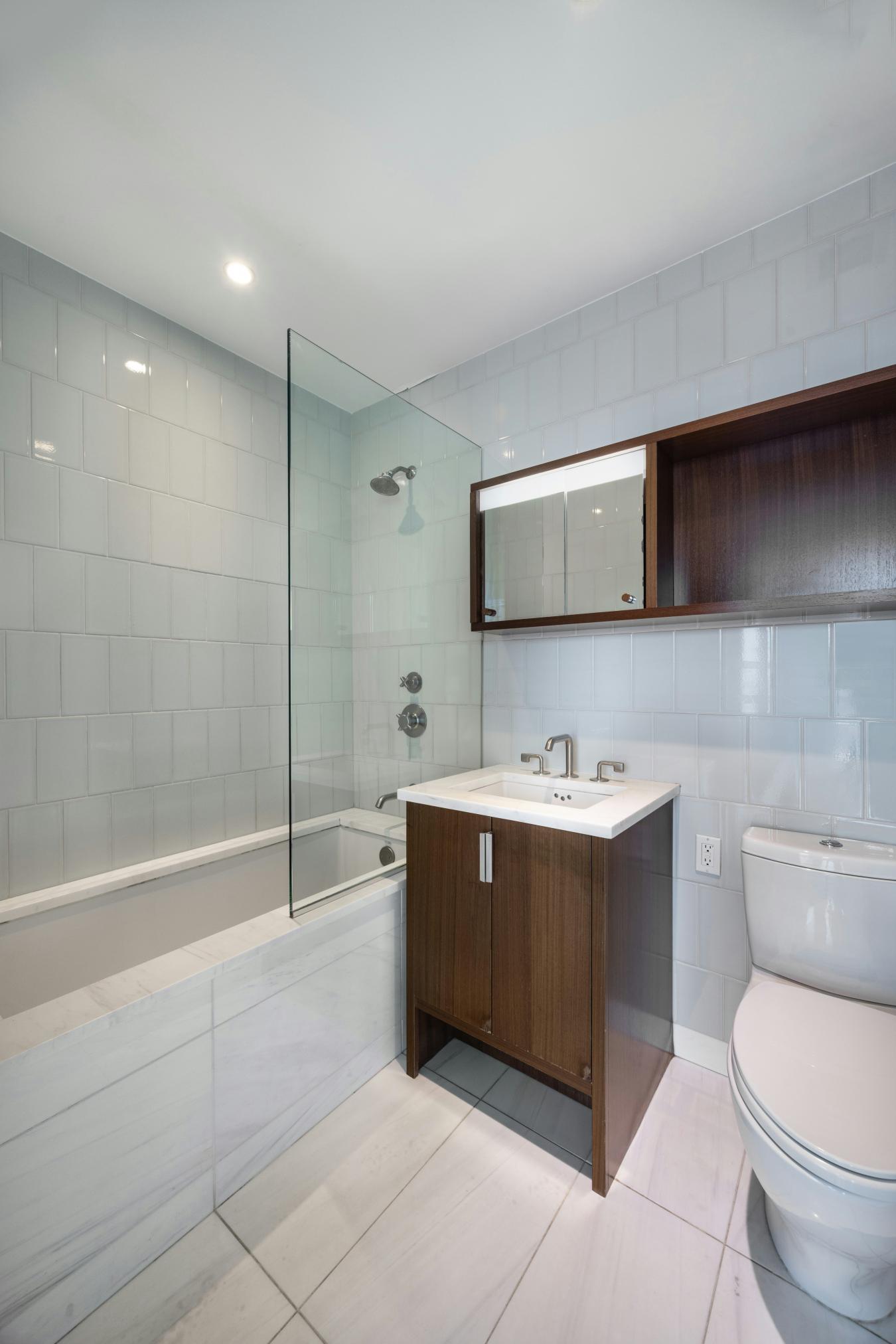 Brand new at Celeste Gramercy Condominium! A high-floor two-bedroom, two-and-a-half bath home with floor-to-ceiling windows that provide magnificent sunlight from morning to evening. This mint and super bright home is well laid out, with a loft-style living/dining room and a chefs kitchen opening into it. There are wide walnut floors throughout, along with 9-foot ceilings, ample closets, a half bath for guests, and a Bosch washer & dryer. The kitchen is stunning, with marble countertops and backsplash, white lacquered cabinets, and Gaggenau appliances, including a wine cooler. The primary suite enjoys southern exposure, a wall of closets, and a luxurious en-suite windowed bath with a double vanity, soaking tub, glass-enclosed shower, chevron-patterned marble floors, and tile walls. The second bedroom is generously sized with its own well-appointed en-suite bath. Celeste is a boutique 20-story condominium designed by Eran Chen of ODA, distinguished by its limestone and glass facade. Residents enjoy a full suite of amenities, including a 24-hour attended lobby, an outdoor heated pool, a fitness center, a rooftop terrace with a grill, a childrens playroom, a resident lounge, and a live-in manager. Ideally located near Gramercy Park and Madison Square Park, with easy access to the 6, N, Q, R, and W subway lines.