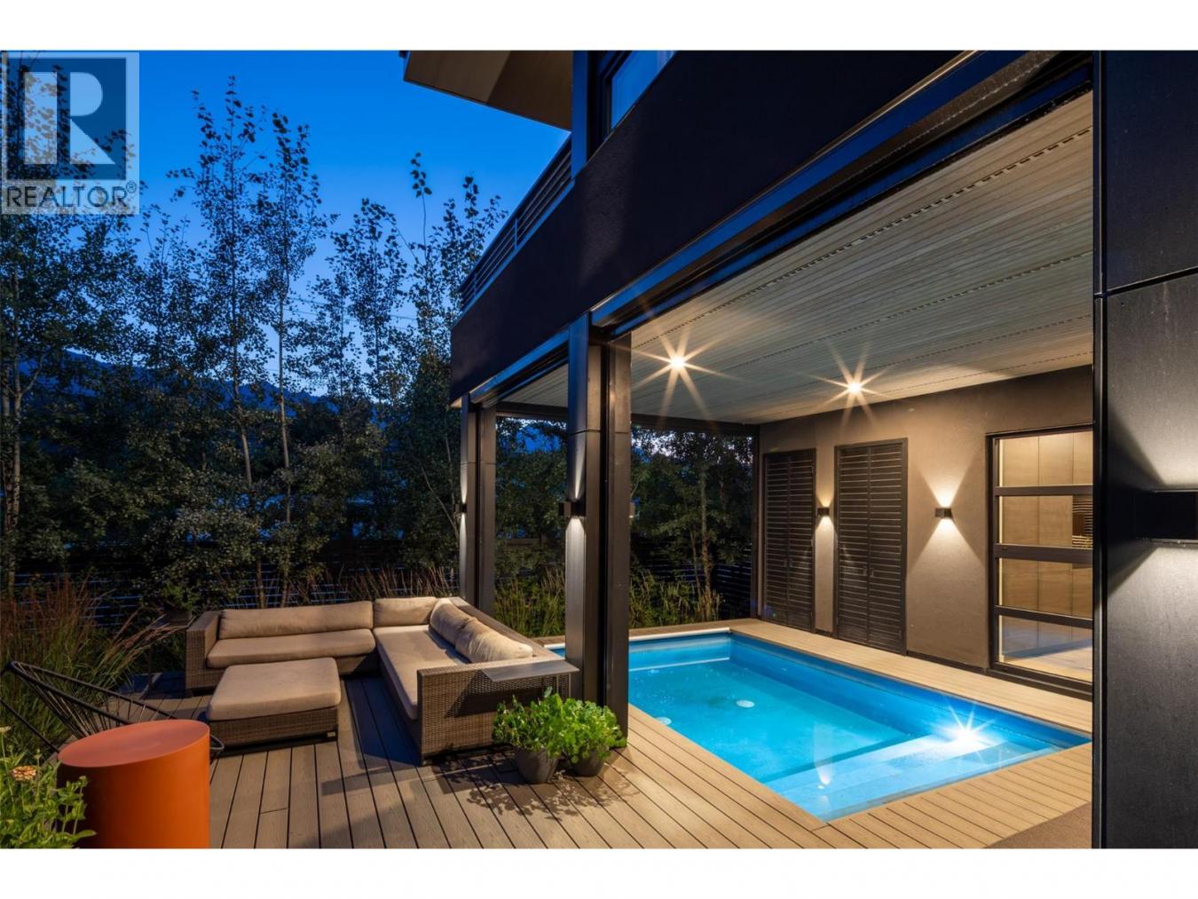 A truly one-of-a-kind architectural masterpiece in the heart of Golden, BC. Situated on a rare triple lot, this custom-built home offers an unmatched blend of design, craftsmanship, and location. Inside, expansive windows flood the home with natural light while framing mountain views. The chefs kitchen features quartzite counters, a propane cooktop, two dishwashers, and two wall ovens. The living rooms soaring ceilings showcase an RSF Renaissance wood fireplace, while the luxurious primary suite offers a spa-like bath with polished white quartzite finishes. Throughout the home, custom window coverings and custom cabinetry add both style and function. Outdoor living is at its finest with a covered, heated pool, multiple lounge and dining areas, an outdoor propane fireplace, Trex decking, and professionally landscaped grounds complete with raised garden beds, mature trees, and full irrigation. Premium aluminum fencing, Rolltec awnings, and Talius screens ensure both privacy and comfort. This property also features a heated oversized garage, 400-amp electrical service, dual heat pump water tanks, European triple-pane windows, and a roof engineered for solar. With its location, lot size, and unparalleled build quality, theres truly nothing like it within town limits and likely never will be again. (id:587