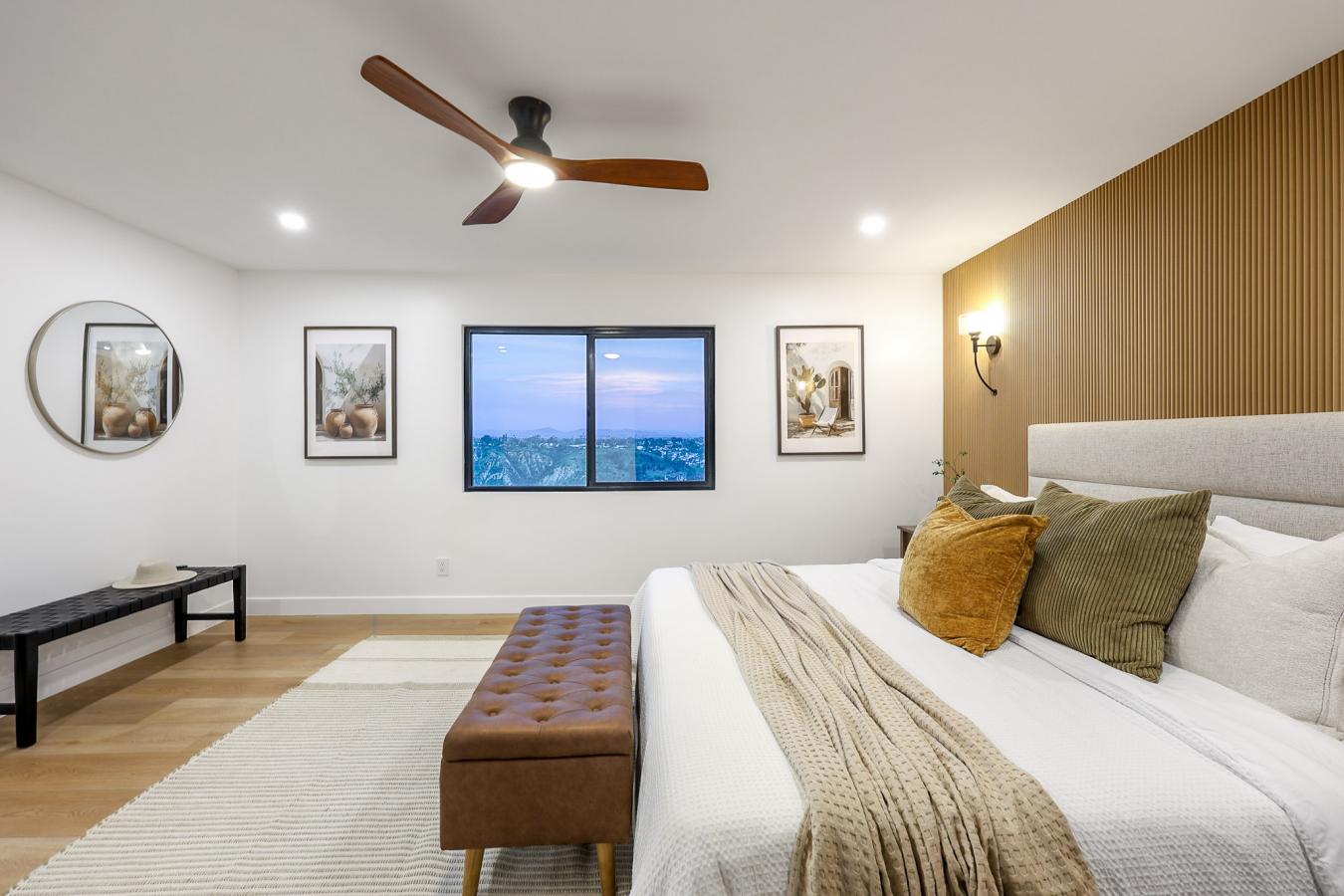 Welcome to 5777 Desert View Drive. Where casual elegance meets sweeping panoramic views. Perched atop Mt. Soledad in the heart of La Jolla, this 5-bedroom, 3.5-bath residence offers approximately 2,904 square feet of living space on an expansive 29,400-square-foot lot, capturing breathtaking canyon, mountain, and city views from nearly every angle. Inside, a thoughtfully designed layout blends everyday comfort with effortless entertaining. The showpiece kitchen features white oak cabinetry, a dramatic 13-foot island topped with Taj Mahal quartz countertops, stainless steel appliances, and a hidden bookshelf pantry door that adds both charm and functionality. A bi-fold kitchen window opens outward to bar seating beneath a louvered pergola, creating a seamless indoor-outdoor experience framed by stunning views. The main living area is further elevated by a striking 16-foot bi-fold glass door, inviting in natural light and unveiling endless canyon and city panoramas while connecting beautifully to the outdoor living spaces. Step outside to a sun-soaked, oversized backyard designed for relaxation, entertaining, and family fun, all set against tranquil morning scenery and the sparkling evening lights of UTC. Tucked along a quiet street, the home offers rare privacy while remaining just minutes from La Jollas renowned beaches, dining, shopping, and top-rated schools. Additional highlights include generous interior living areas, a spacious two-car garage with laundry, and the comfort of a fully turnkey home ready to be enjoyed from day one; just bring your toothbrush.