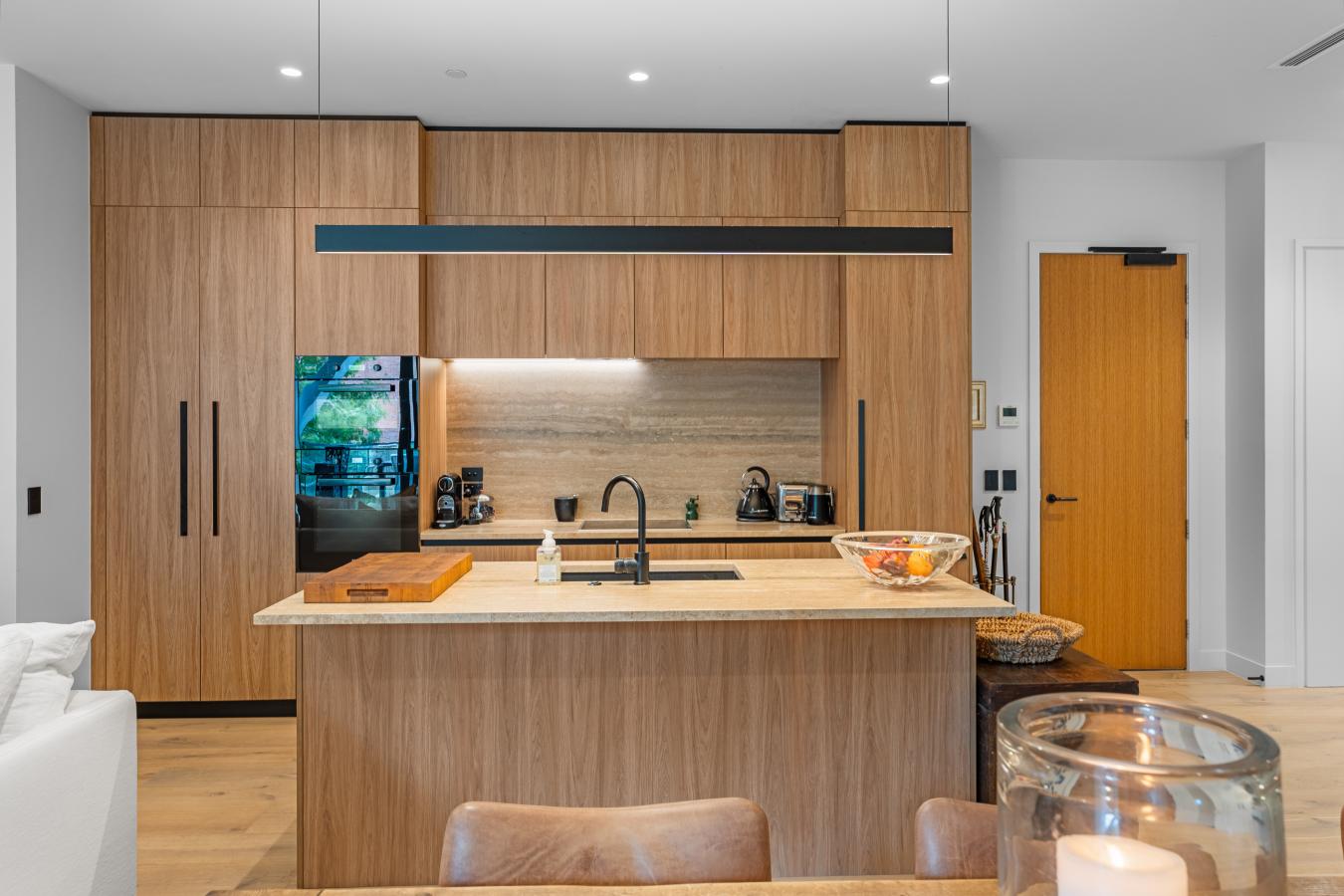 Step inside this masterfully reimagined brownstone and experience elevated modern living paired with timeless design. This extraordinary residence offers five bedrooms, 5.5 bathrooms, an internal elevator, terrace, roof deck, and rear yard. The grand parlor floor welcomes you into a luminous open layout, perfect for both effortless entertaining and tranquil everyday living. A refined neutral palette sets a sophisticated tone, while a gas fireplace, sleek tile flooring, and an original pier mirror-refinished in a soft white lacquer-nod to the homes historic charm with a contemporary twist. The chefs kitchen is as beautiful as it is functional, outfitted with custom flush cabinetry, Caesarstone quartz countertops, and a suite of high-end appliances including a SubZero fridge, Bosch dishwasher, Summit wine cooler, and Wolf gas cooktop with double wall oven. Just across the way, a skylit dining room invites intimate meals or grand gatherings, with direct access to a rear deck made for al fresco dining. Ascend the striking glass and white oak staircase to your full-floor primary suite. A walk-through custom closet leads into a spa-worthy bath, showcasing a freestanding soaking tub, double quartz vanity, patterned tile accent wall, and a glass-enclosed rain shower with bench seating. From here, step onto your private terrace-an ideal perch for quiet mornings or evening unwinding. The third floor hosts two generously sized bedrooms, each with walk-in closets and radiant-heated en-suite or adjacent baths featuring sleek chrome fixtures and glass-enclosed showers. Atop the home, the private rooftop terrace is a true showstopper. Complete with a wet bar, Wolf range, and SubZero fridge, this is the ultimate space to entertain against the Manhattan skyline. The garden level offers versatility and comfort, with a large recreation room, laundry, powder room, second wet bar, and access to the fully renovated backyard-ideal for indoor-outdoor living year-round. Additional conveniences include a video intercom system and thoughtful storage throughout. Perfectly positioned near Whole Foods, the 2/3/4/5/6 subway lines, and surrounded by iconic Harlem staples like Sylvias, Red Rooster, and Harlem Shake, this home offers the best of city living. Spend weekends exploring Marcus Garvey Park, just moments away from your front door.