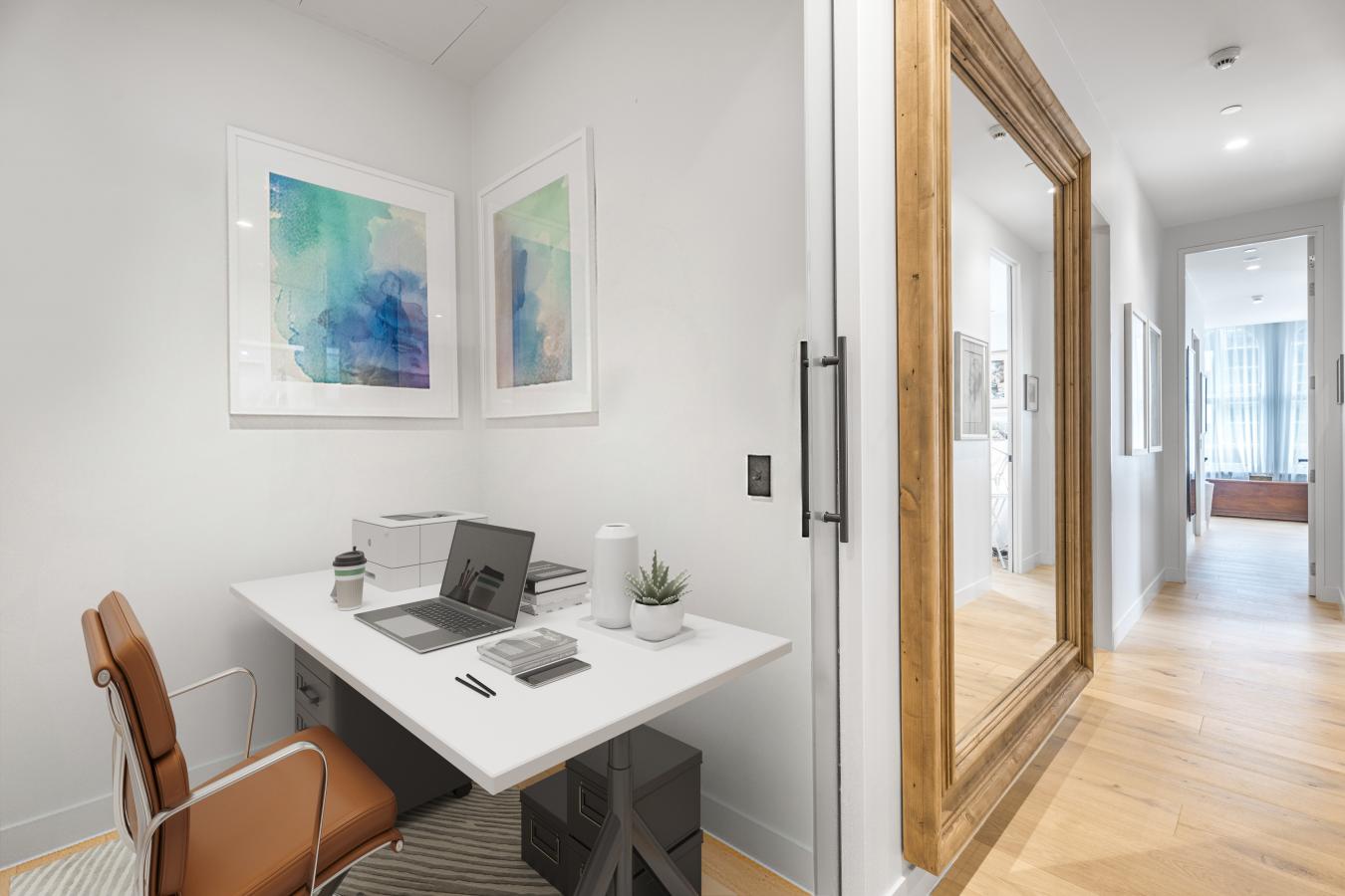 Perched high above Midtown, Residence 28B at The Link Condominium is a sun-filled, corner two-bedroom, two-and-a-half-bath spanning over 1,300 SF. Walls of glass frame cinematic vistas: majestic Hudson River views to the west, sweeping open cityscapes to the south and east, and vibrant sunsets that fill every room with light.