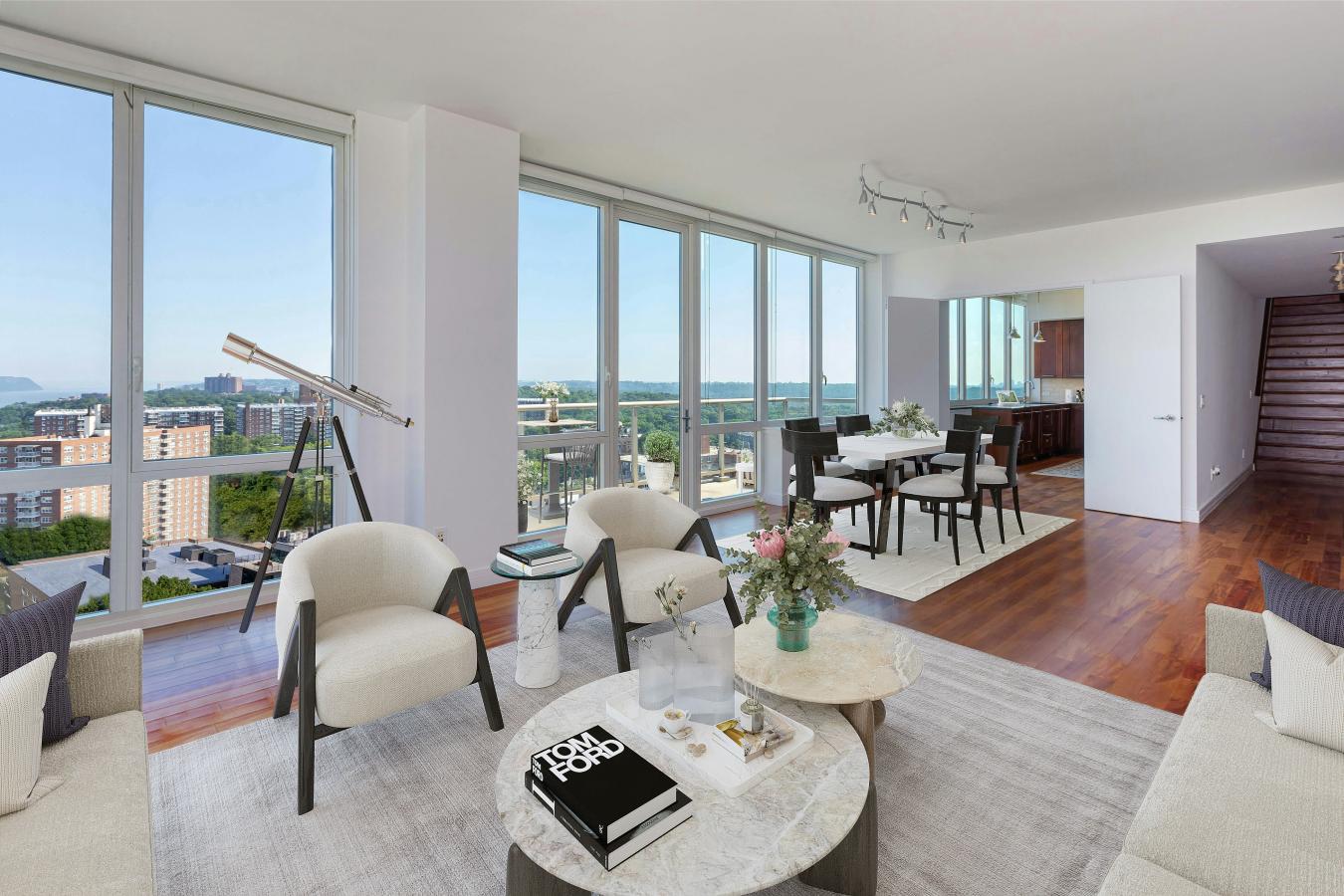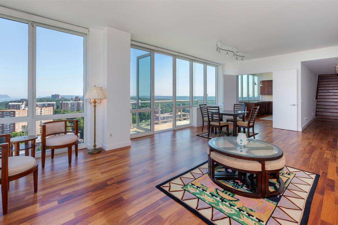 AMAZING NEW PRICE! Imagine that you are on top of the World at The Solaria Condominium PENTHOUSE. Everything at your fingertips with top of the line appliances and warm wood finishes on the European Shaker-style cabinetry in this windowed Chefs kitchen. This large 4 bedroom, 4 and a half bathroom Condo has over 2700 sf of luxury living with beautiful appointments throughout the home with 10 foot ceilings and floor to ceiling windows. Closets are California closet designed. Enjoy spectacular views of the city and non-stop vistas of the Hudson River and the Palisades from a PRIVATE ROOFTOP TERRACE WITH A PRIVATE GALLERY. You will love the Primary Bedroom with an ensuite bathroom with radiant heated floors and deep soaking tub and separate glass shower, to just relax and enjoy. There is a washer/dryer in the apartment. The Solaria has a 24 hour Concierge, state of the art fitness center, lounge & entertainment center, landscaped roof deck with extensive views, and a playroom. Local and express buses a half clock away with access to #1, #4 and A trains, express buses to Midtown East and West Sides, a Wall Street Express bus and Metro North Station Rail Link to the Spuyten Duyvil Metro . Central Riverdale shops just 4 blocks away. OWNER FINANCING AVAILABLE WITH CONDITIONS. Ideal Purchase for an Investor. Elevator Assessment 678.77/mo. Terrace Assessment 226.50/mo.