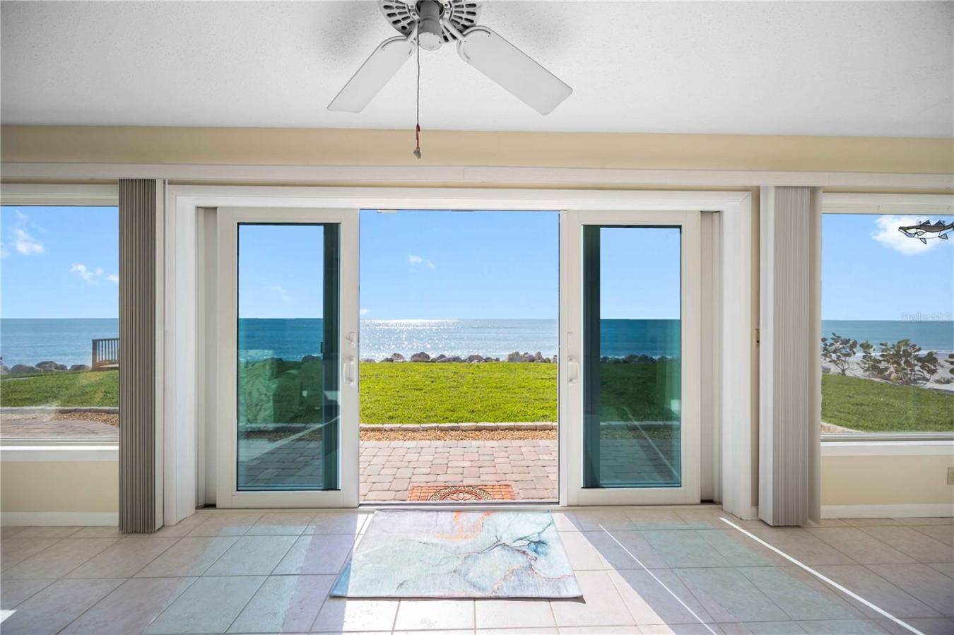 Premier Gulf-front gem on secluded Manasota Key, Englewood, where true privacy meets unbeatable coastal living. This rare two-bedroom, two-and-a-half-bath residence sits on over half an acre, with 100 feet of private beachfront right outside your door-your own front-row seat to sea turtles laying eggs and hatching during season, one of the rarest wildlife experiences anywhere. Plus, a deeded dock slip across the street on Lemon Bay is perfect for calm launches, kayaking, or quick Gulf access. Hard to find anywhere: direct Gulf of Mexico frontage-ideal for sunrises, barefoot walks, effortless boat rides, and legendary shelling on your sand. This stretch is famous for shark teeth finds, big Megalodon fossils included. Surroundings? Pristine, quiet nature-no crowds, just you and the water. Inside, fully refreshed with new impact windows, sliders, and irrigation; outside, fresh sod and new pavers turn the yard into your own private oasis. The detached garage houses a 576-square-foot guest suite complete with bedroom, bath, kitchen, dining, and living for guests or quiet getaways. Seclusion, views, and waterfront ease at its best.