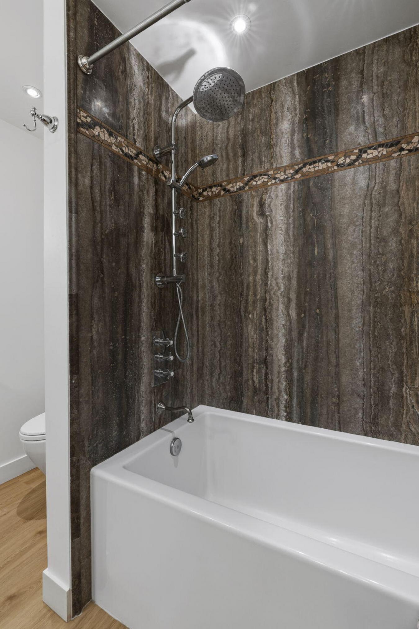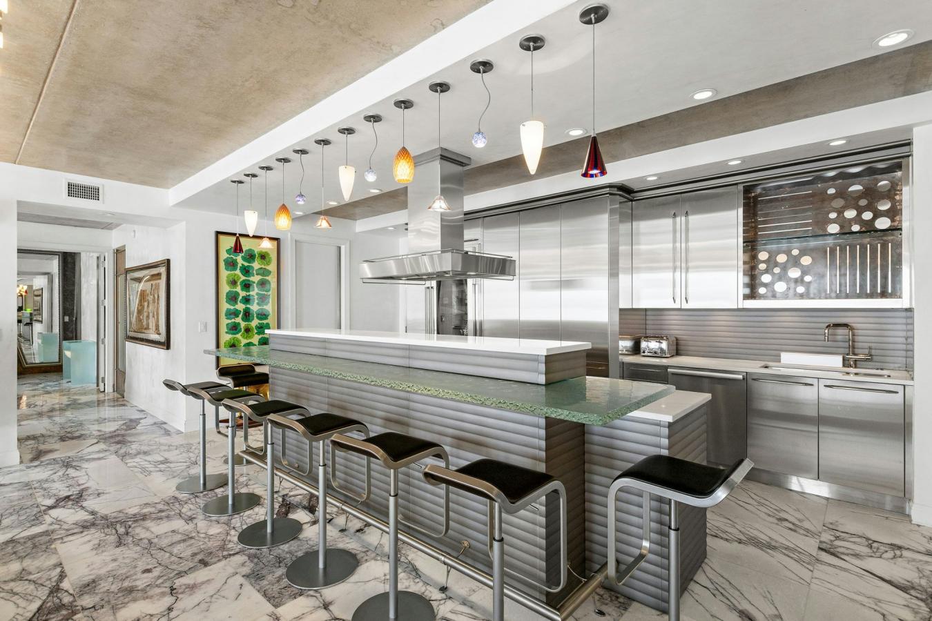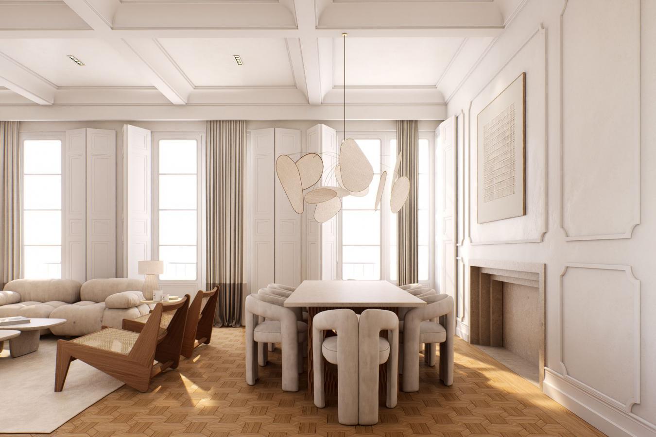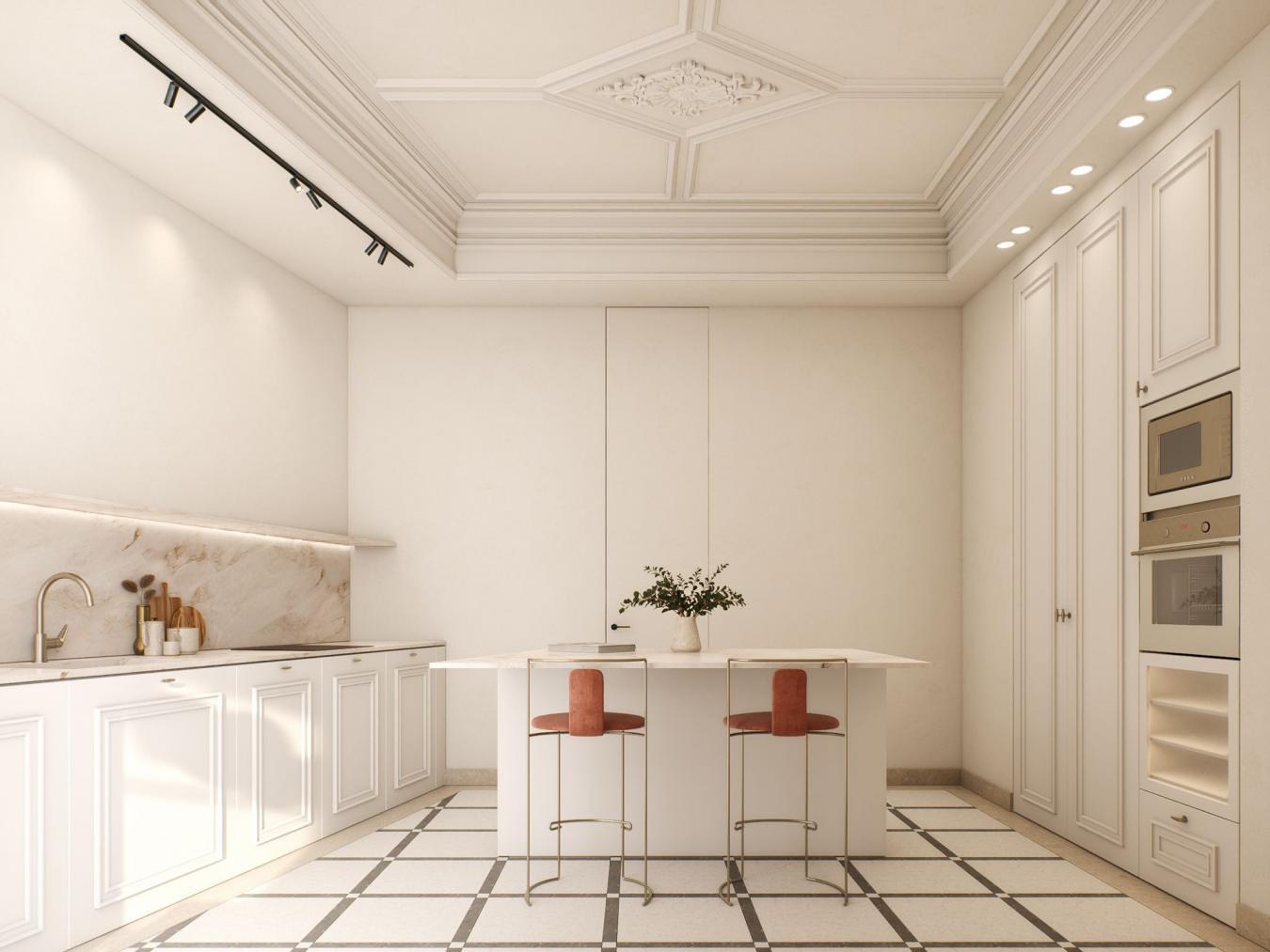 Designed by a talented interior designer, this residence is created in a vibrant neighborhood surrounded by trendy hotels, stylish shops, and modern buildings. Step into a spacious living room with soaring ceilings, creating an open and airy atmosphere.