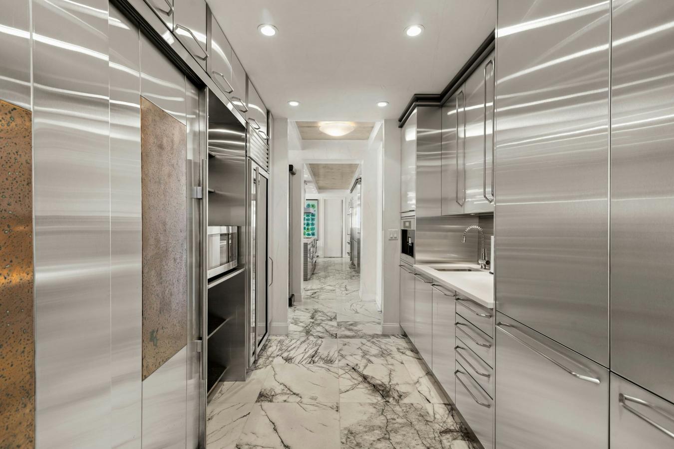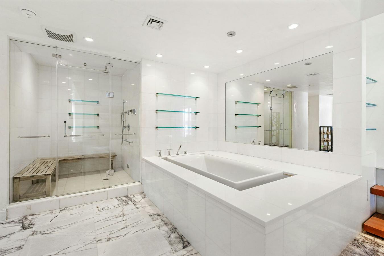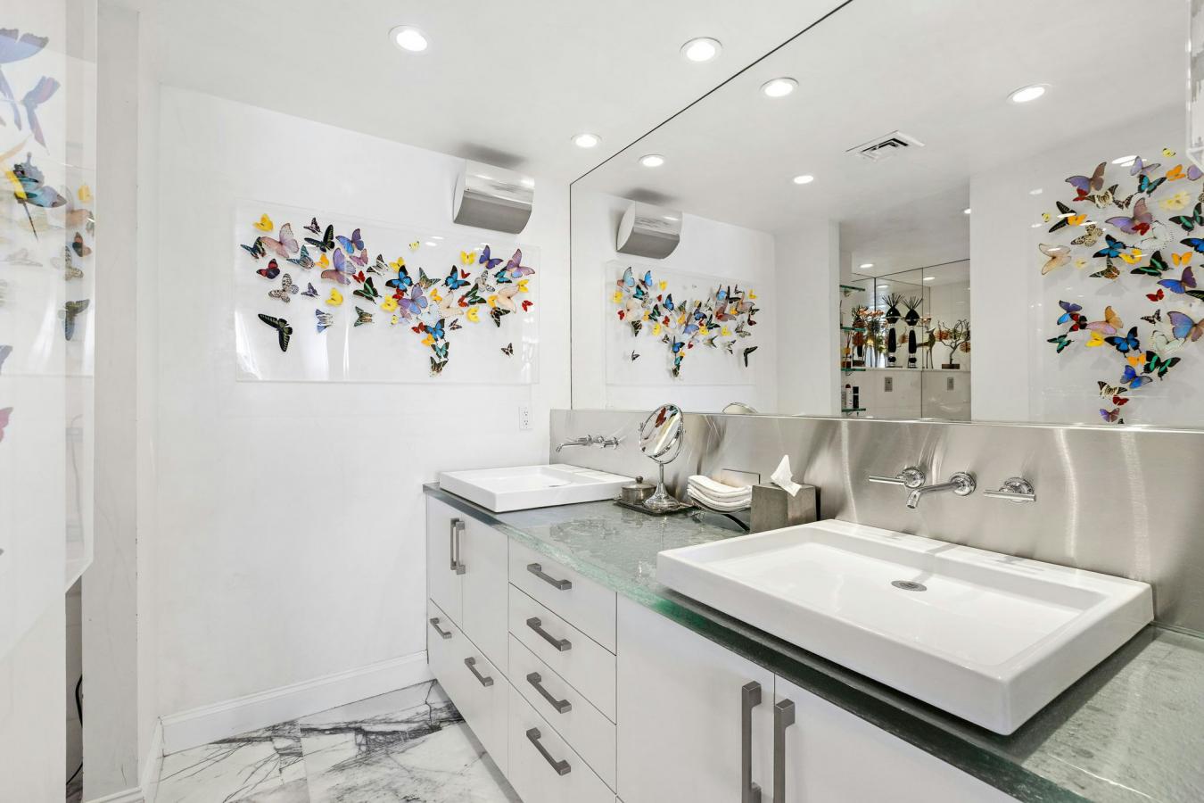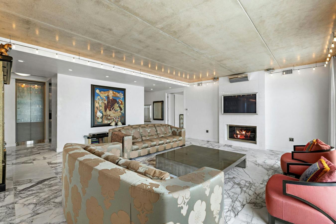 Welcome to this one-of-a-kind, sprawling penthouse located in the always desirable Admirals Walk building in Edgewater. Originally two separate units, the home underwent a high-end, gut-renovation combining the two units to create a total of 3042 ft. This meticulous renovation has created a unique home, with spectacular views of the George Washington Bridge, New York City and the Hudson River. Step inside and discover stunning views from every window, polished concrete and Venetian plaster ceilings, and radiant heated translucent marble flooring throughout. The center of the home is where you will find the custom chefs kitchen, featuring a commercial-grade Wolf oven and cooktop, Wolf convection microwave and stainless steel drawers and warming drawers, a Miele vented hood and dishwasher. The center island is complete with a Thinkglass bar top and a marble countertop, which leads to the expansive dining room and separate living room, both flooded with natural light from four floor-to-ceiling glass doors which open out to two separate balconies, providing stunning views of the George Washington Bridge and the Hudson River. The living room and dining room are book ended by double sided wood-burning fireplaces. Here you will also find a Butlers pantry, complete with custom Stainless steel cabinetry by Neff, a Miele coffee station, Kohler sink, sub zero wine fridge and custom coat closet. The primary bedroom suite offers a Custom Italian closet system, Bang and Olufsen audio and TV and access to your private balcony. The spa-like primary bathroom features a custom double vanity, glass countertops, wall-mounted, Kohler sinks, a separate steam shower with glass enclosure, an effervescent, chromotherapy infinity bathtub. Within the primary suite there is also a separate dressing area with custom closets, access to the balcony and a fireplace. This can be used as a separate nursery or den/office. Adjacent to the dining area is where you will find a large custom office, which can easily be converted to a third bedroom and a powder room with a custom cast iron sink. The second bedroom has custom Italian closets an en-suite bathroom with a glass enclosed shower, a separate make up stand and its own private entrance to the balconies. Integrated Lutron lighting system and a Bang and Olufsen audio system throughout the home. A total of eight zones of radiant heat and four separate HVAC zones. Every inch of this spectacular residence has been thoughtfully renovated with vision and incredible attention to detail. Admirals walk is a professionally managed, waterfront community. Enjoy low taxes in this amenity-rich building, offering a gated entry with a security guard, 24 hour doorman, two tennis courts, a basketball court, an outdoor pool, a pavilion with a community room and fitness center. Your HOA includes all amenities, internet, premium streaming cable and water. Ideally located, less than a five minute walk from the ferry to New York City which means you can be in NYC in 11 minutes, and 2 blocks to Whole Foods and Veterans Park. Penthouse 8 is complete with a total of 3 parking spots, 2 assigned premium outdoor spots by the entrance and deeded covered parking spot in the garage. Yes, you truly can have it all!