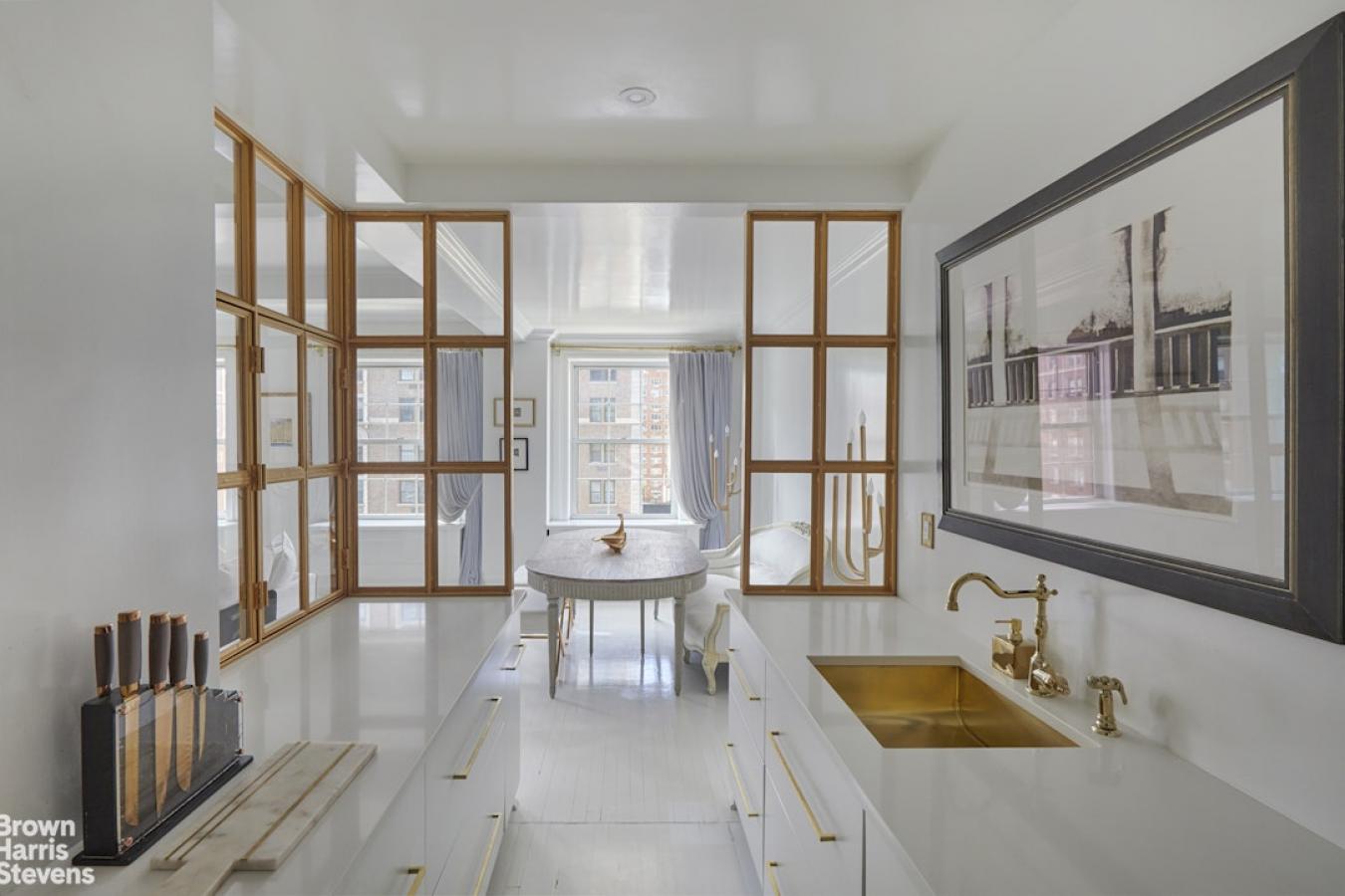 Unit 10 at 891 Park Avenue is a true jewel box nestled in the heart of the Upper East Side. This chic full-floor home is comprised of two-bedrooms, two-and-a-half-bathrooms and a solarium planned in a gracious layout. The sumptuously appointed private elevator landing sets the tone to the spacious foyer, adorned with classic prewar details including moldings and a preserved vintage mail chute, unique to find inside the residence. Located just off the foyer, overlooking Park Avenue through three oversized west-facing windows, is the stately living room and accompanying dining room. The gas fireplaces mantel along the north wall, a stunning piece of hand-carved Sienna marble with gold Ormolu details salvaged from The Plaza Hotel, anchors the room. Built-in storage with glass shelving symmetrically flanking either side of this dramatic showstopper makes for the perfect dry bar or at-home library for the voracious reader. The windowed dining area, adjacent to the living room, allows for ideal easy flow while entertaining. Natural light pours through the generous windows and shines bright on the white wood floors found throughout the home. The picturesque kitchen located just a stones throw away from the dining area is both functional and stylish. Residence #10s custom-made French windows were designed for the kitchen to feel as its own distinct, purposeful space while still allowing for an abundance of natural lighting. This decorative element, alongside brass and gold hardware, introduces a pop of color amidst the clean, white lacquered cabinetry. Final elements of this designer kitchen are comprised of a six-burner Wolf range with vented hood and paneled appliances that include a pair of SubZero refrigerated drawers and a Bosch dishwasher. Stainless steel cabinets curated from the New York Times building put an authentically New York finishing touch on this posh Park Avenue kitchen. A long gallery with plenty of art walls places the bedrooms in a separate wing of the residence and creates excellent separation of space. Both bedrooms are tucked away in the quiet eastern wing of the apartment, allowing for both peace and privacy. The king-sized primary bedroom has dual south and east exposure and can accommodate the most robust of wardrobes thanks to a large walk-in closet. An updated ensuite marble bathroom, complete with heated floors and spa glass shower, finalize this upscale primary retreat. The second bedroom is also generously sized with a full ensuite bathroom and an idyllic solarium that presents the perfect seating nook. Additional features of this extravagant residence include a powder room and laundry closet with a stacked in-unit Samsung washer/dryer. Crown and baseboard molding, beamed ceilings, recessed lighting, an abundance of storage, and a heat and air conditioning system can be found throughout the entire home. A private storage unit in the basement transfers with the sale. This is a rare opportunity to own a full-floor residence in a charming boutique co-op with only 15 units. Built in 1931 by Arthur Paul Hess, 891 Park Avenue features a live-in resident manager as well as doorman on duty 24 hours from Friday to Sunday, and from 7:00am-11:00pm on Monday to Thursday. The co-op allows pied-a-terre ownership, co-purchasing, purchasing in a Trust, 50% financing, and pets, all with Board approval. Taxes here are not included in the monthly maintenance and are covered by a semiannual real estate tax assessment of 11,235. A transfer fee of 3% is payable by the purchaser.