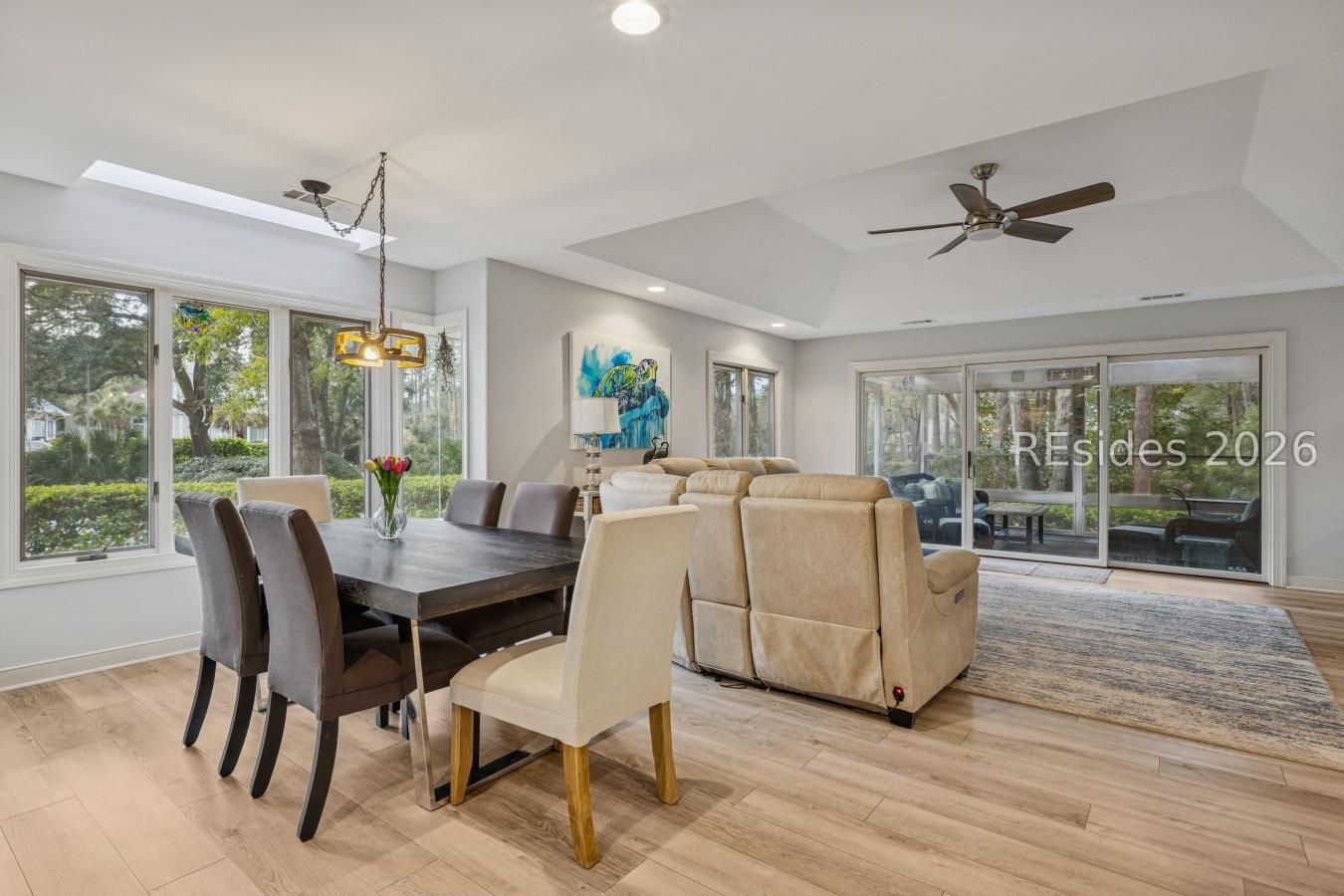 Wake up every morning to the shimmering reflection of sunlight dancing across the water. Nestled on over a half-acre lakefront lot in the heart of coveted Palmetto Dunes, this stunning 4-bedroom, 4.5-bathroom retreat offers the kind of lifestyle that people dream about-and here, its simply your everyday. From the moment you step inside, the home wraps you in warmth. The bright, open kitchen features a large island, granite countertops, and premium appliances-a natural gathering place where morning coffee tastes just a little better with that lake view out the window. The generous living and family rooms flow seamlessly together, giving everyone room to breathe and connect. The spacious primary suite is a true sanctuary, complete with a beautifully renovated en-suite bath. A flexible fourth bedroom adapts easily to a bunk room, media lounge, or whatever your lifestyle calls for. But the real magic happens outside. Step through the peaceful sanctuary that is the screened porch onto the deck, where a heated pool, spa, and cascading waterfall create a private resort atmosphere-all set against the serene backdrop of your own shimmering lake and private dock. Whether youre watching herons glide across the water at dusk or floating in the pool on a lazy afternoon, the peace here is palpable. And when adventure calls, you are steps from the beach via the closest path between Junket and Ketch, with Palmetto Dunes world-class golf, tennis, and pickleball amenities just around the corner. This is more than a home. Its a feeling-and its waiting for you at 9 Full Sweep.
