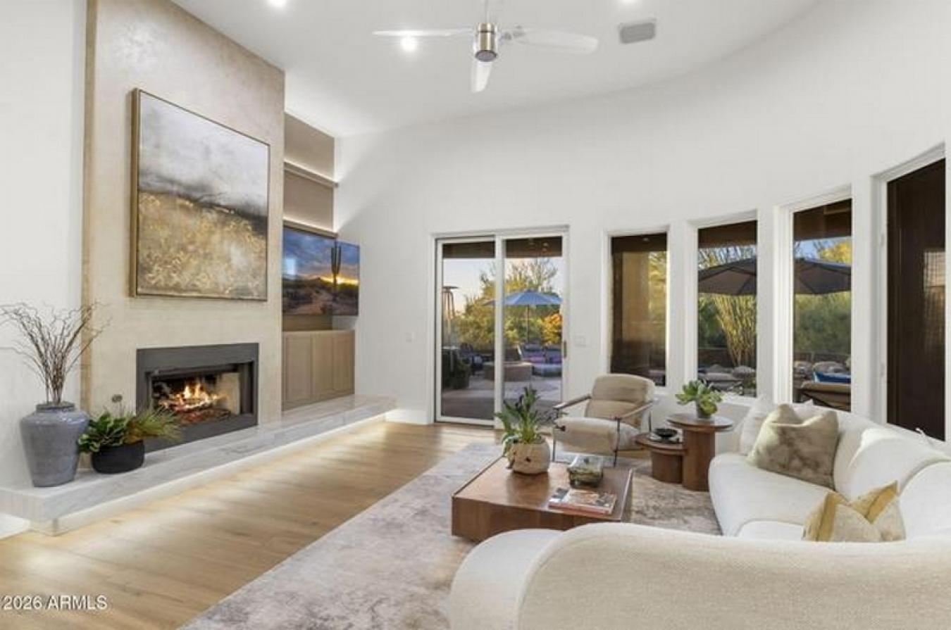 Nestled within the prestigious gated community of Troon, this beautifully remodeled home offers refined desert living with high-end finishes throughout. The chefs kitchen features striking quartzite countertops, custom cabinetry, and premium Monogram appliances, including a six-burner gas range and double ovens-perfect for entertaining. Rich wood flooring flows through the home, while spa-inspired bathrooms showcase elegant marble and natural stone finishes. Enjoy cozy evenings by the beautifully updated fireplaces or unwind in the privacy of your peaceful desert surroundings. Additional highlights include a 3-car garage with EV (electric vehicle) charging and quality upgrades throughout. Experience the beauty, tranquility, and elevated lifestyle that Troon living is known for.