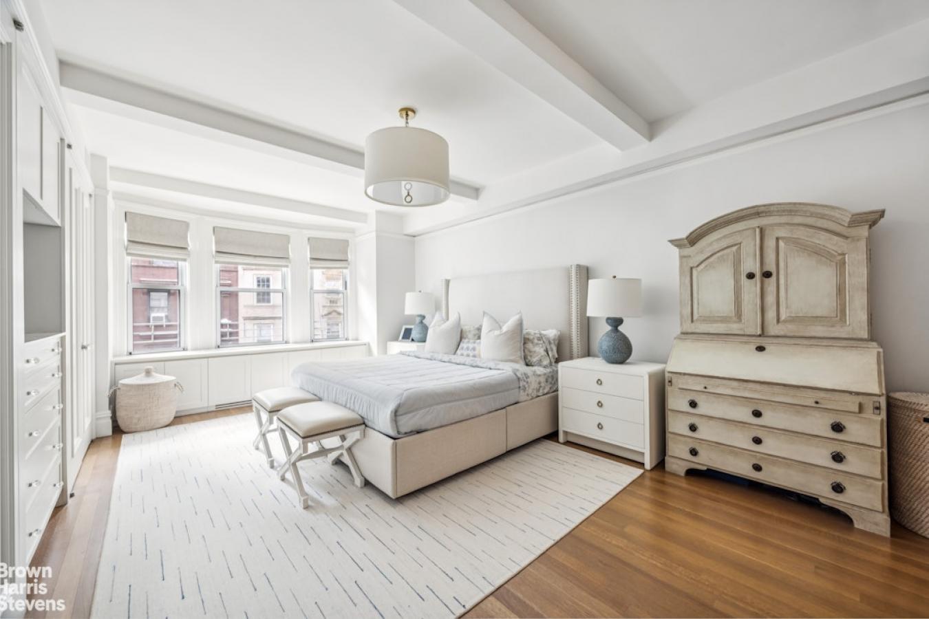 Fully gut renovated in 2019, this beautifully reimagined three-bedroom residence offers the rare combination of prewar scale and modern infrastructure in one of the Upper West Sides most charming cooperatives. Spanning approximately1500 square feet (see floorplan), the layout is expansive yet intuitive. A gracious entry foyer opens to an expansive 28-foot living room with beamed ceilings, oversized windows, and custom built-ins - an exceptional space for both entertaining and everyday living. The windowed kitchen was thoughtfully redesigned with marble countertops, custom cabinetry, and a built-in banquette dining area. The premium appliance suite includes a Bosch gas range, Bosch dishwasher, and a Miele refrigerator, combining high-performance functionality with streamlined design. The serene primary suite features custom closets and a marble-clad en-suite bath with glass-enclosed shower and refined contemporary finishes. Two additional bedrooms are generously proportioned and served by a beautifully renovated second bath. Throughout the home, the 2019 renovation included updated plumbing and electrical systems, custom millwork, classic hardwood floors, recessed lighting, and full-size in-unit Whirlpool washer and gas dryer - delivering true move-in condition. This elegant nine-story prewar cooperative is one of the Upper West Sides hidden gems, located on a picturesque block midway between Central Park and Riverside Park. A beautifully planted entryway welcomes residents home, and a tranquil courtyard provides a rare outdoor retreat. The building features a live-in superintendent and attentive staff, video intercom, laundry room, private storage bins. The building allows 75% financing and is pet friendly.