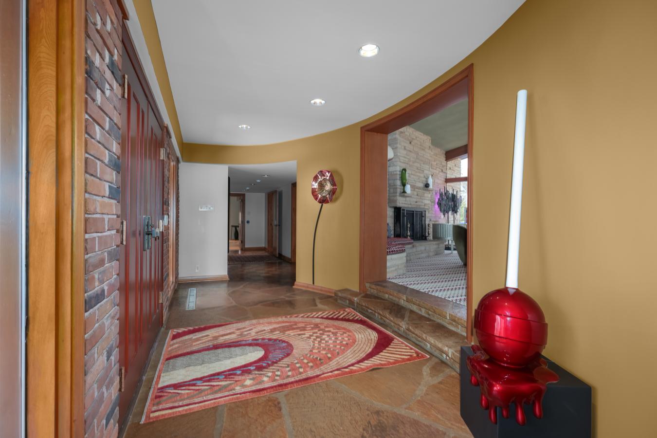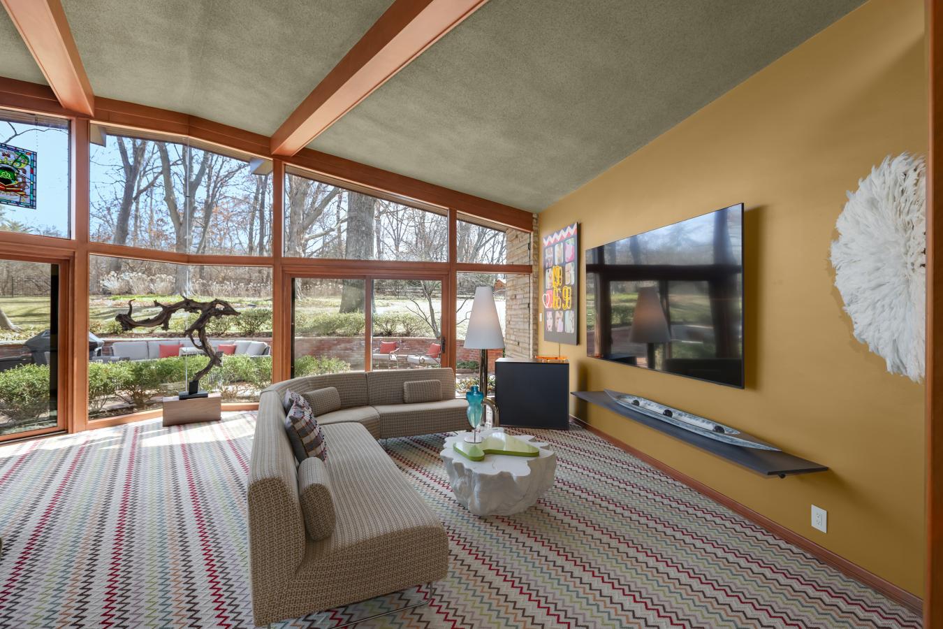 Tucked at the end of a private cul-de-sac on 1.87 acres, this 4,600 square foot mid-century modern residence delivers an exceptional blend of architectural sophistication, privacy, and scale, all within the award-winning Ladue School District.