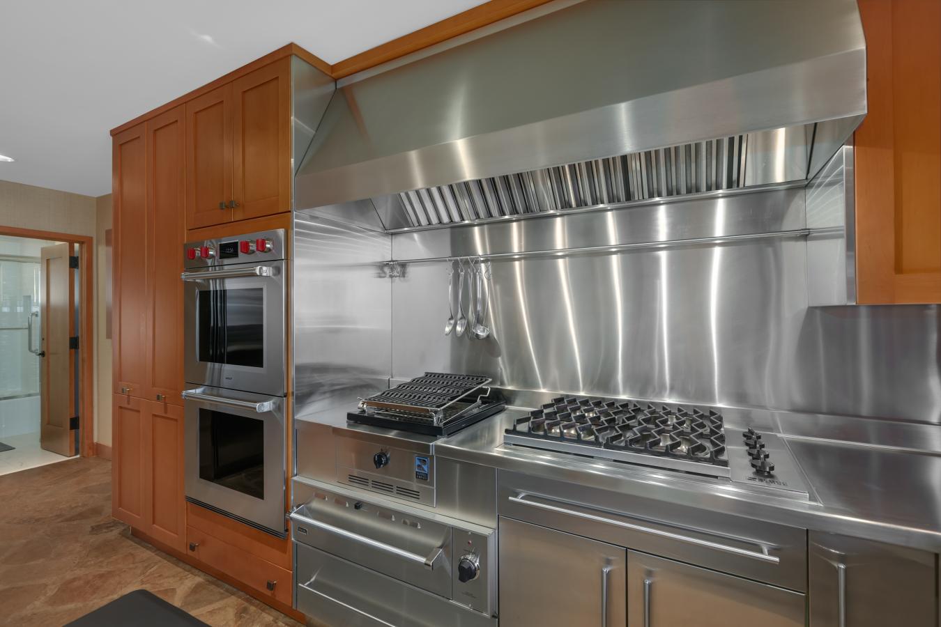 Offered turnkey, fully furnished and decorated. Located in the premier gated community, Stone Cliff, with views to the NE, it borders a protected open space, which offers unobstructed mountain views and city lights. Everywhere you look, you will be pleased with the attention to detail. The kitchen, family room, dining room, and primary bedroom all face toward the NE, where the amazing saltwater pool & water feature is the focus. Thermador Double Ovens, Microwave, Full Fridge Freezer. There is tons of storage in the kitchen.